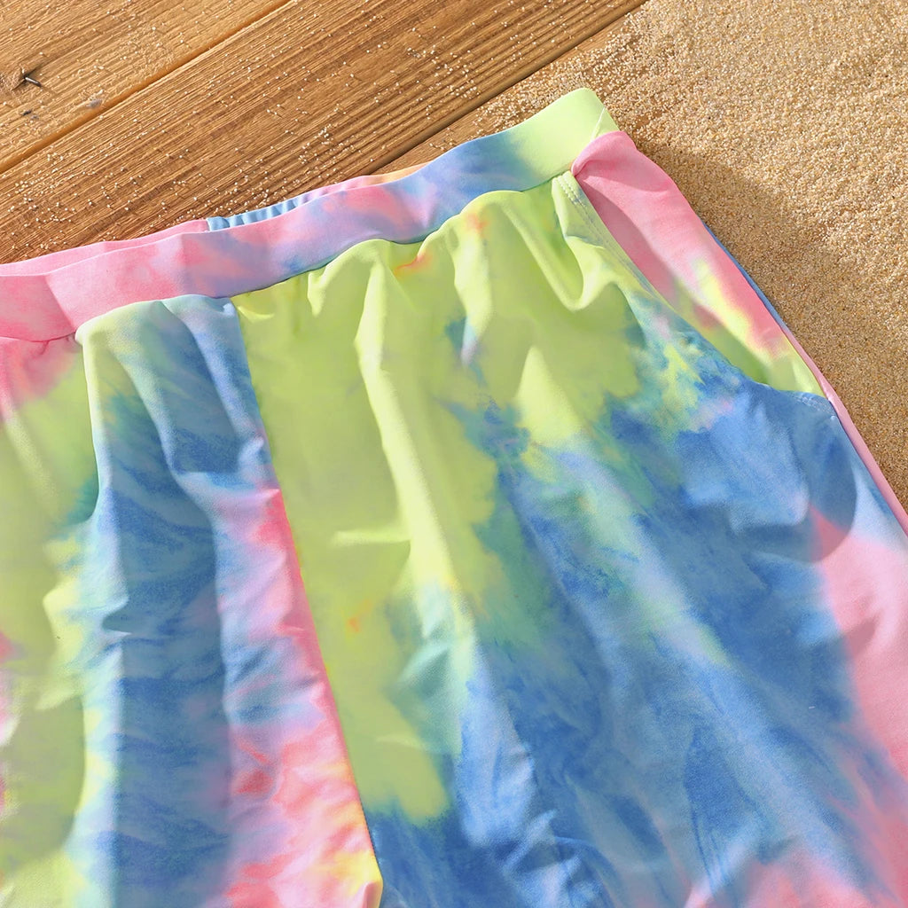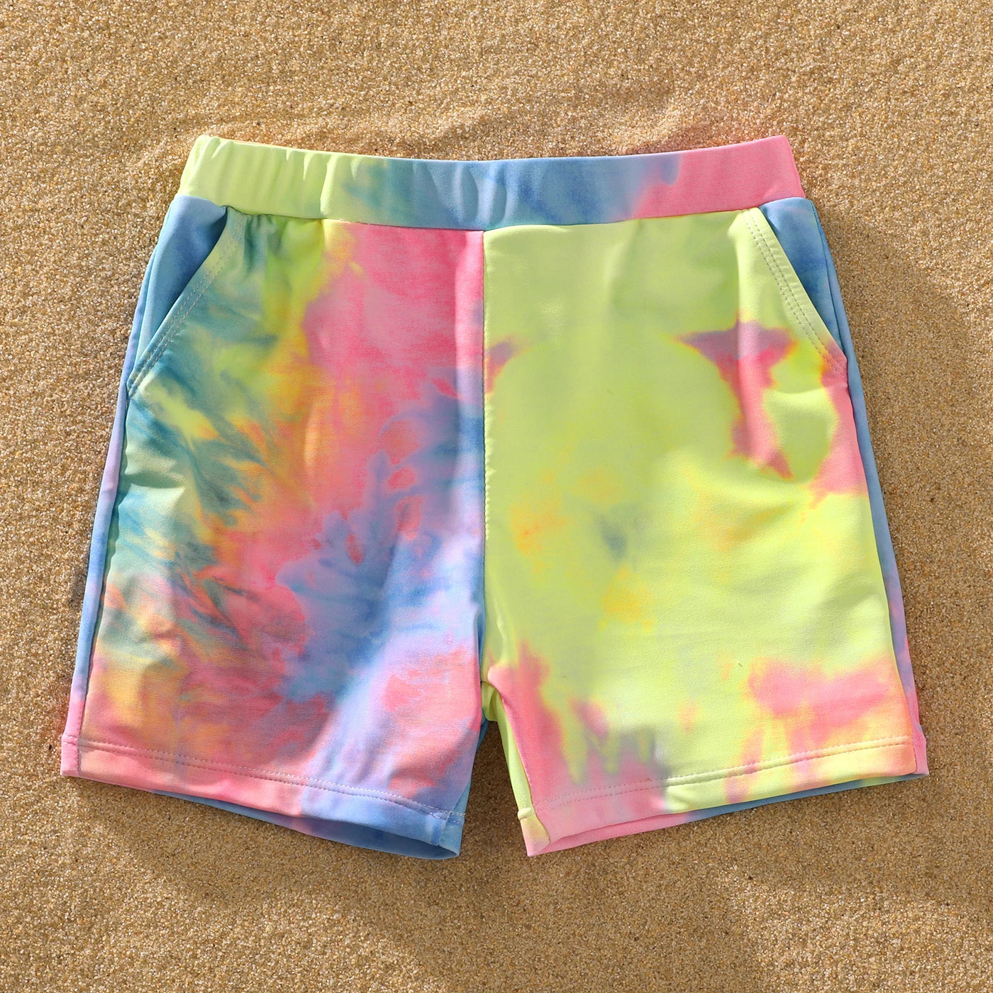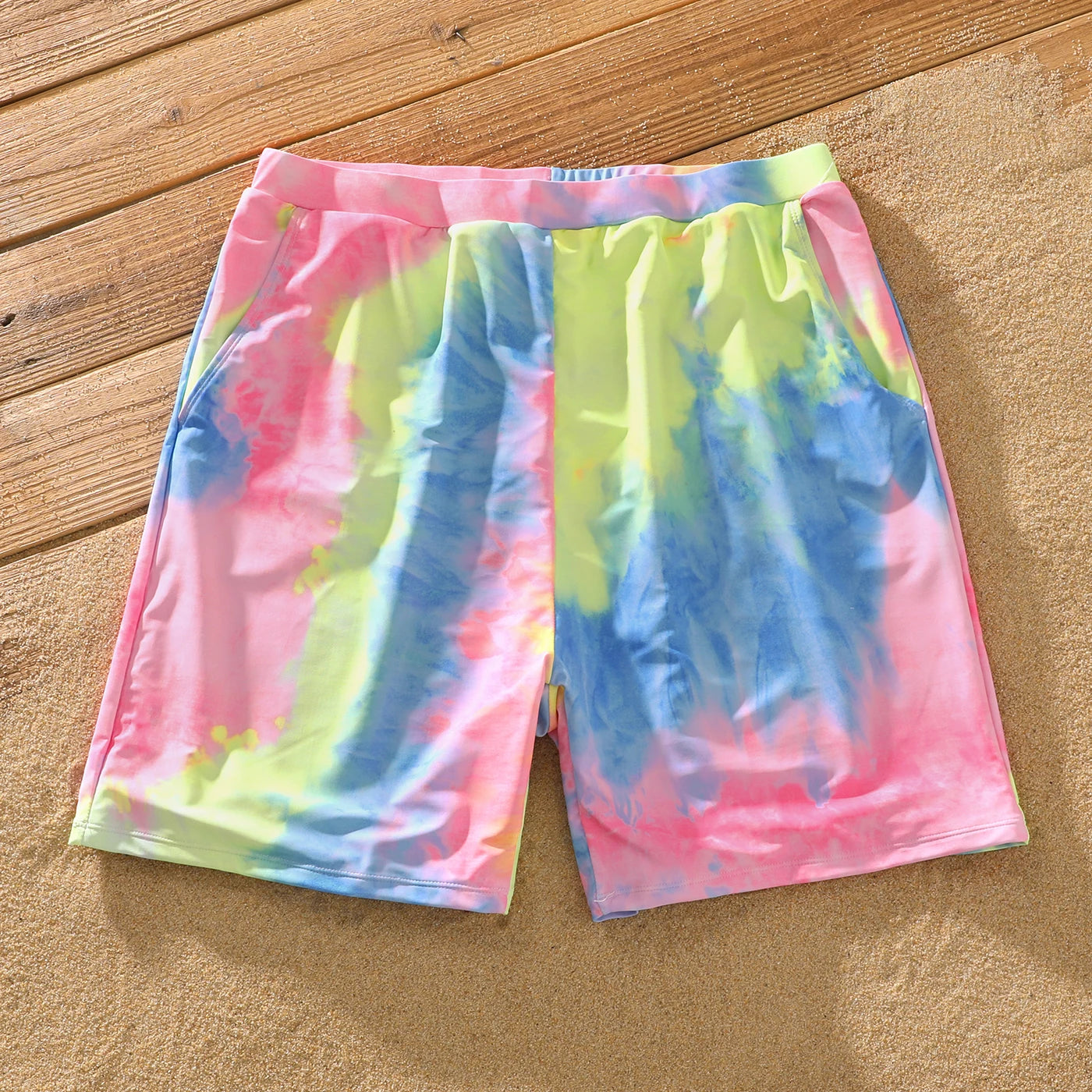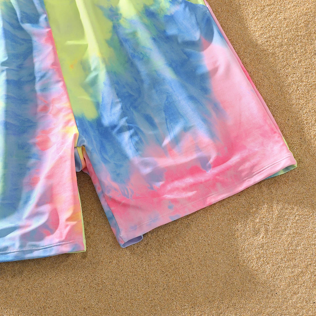 Trajes de baño a juego con cuello en V y teñido anudado: bañadores de una pieza y bañadores ahuecados