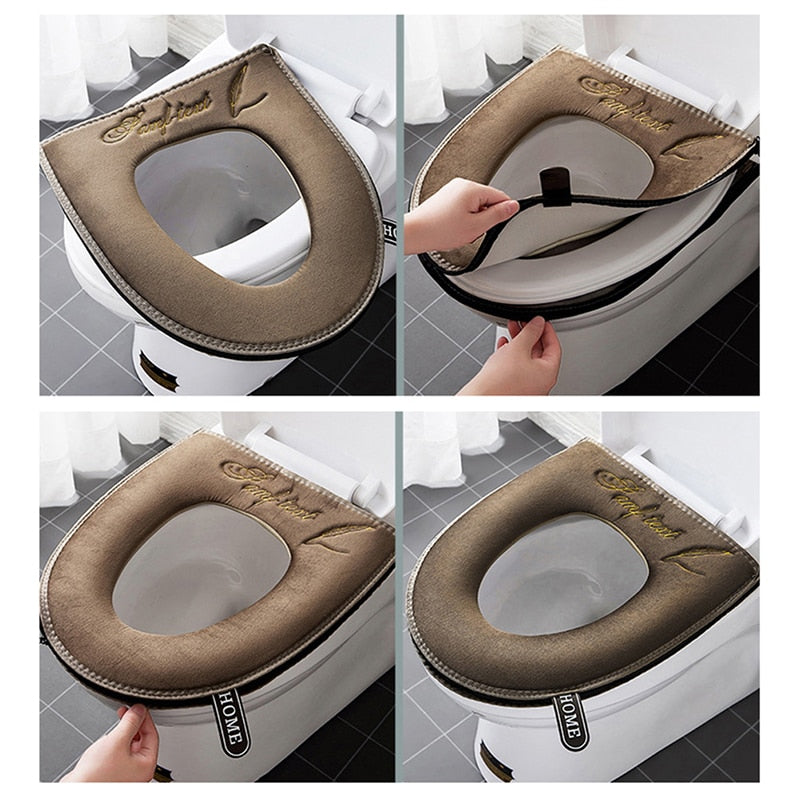Funda universal para asiento de inodoro, cremallera extraíble suave con asa abatible