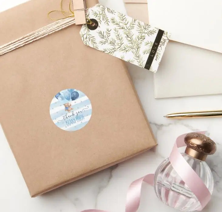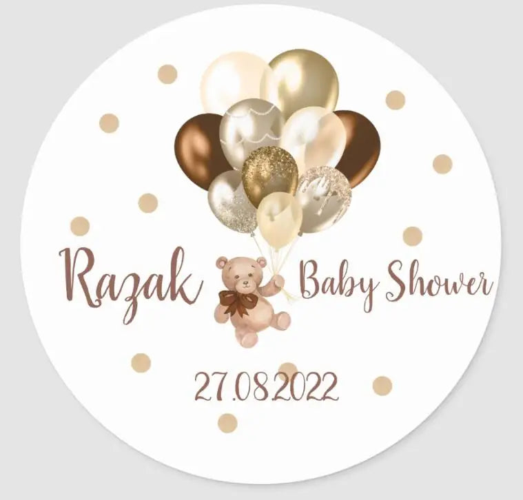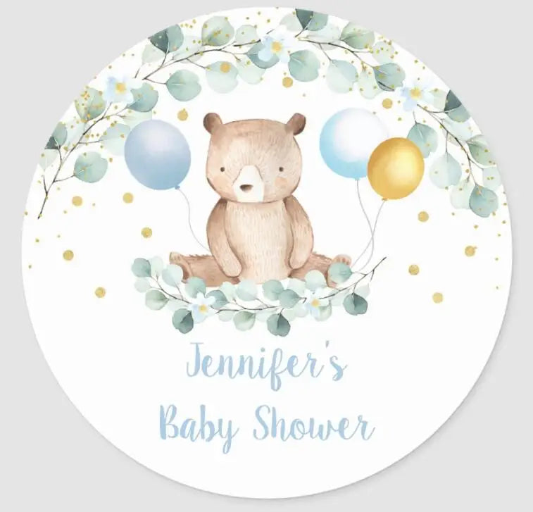Etiquetas adhesivas personalizadas de oso globo para bautizo 2025 - Etiquetas temáticas de zoológico para baby shower y fiestas de cumpleaños con nombre personalizado