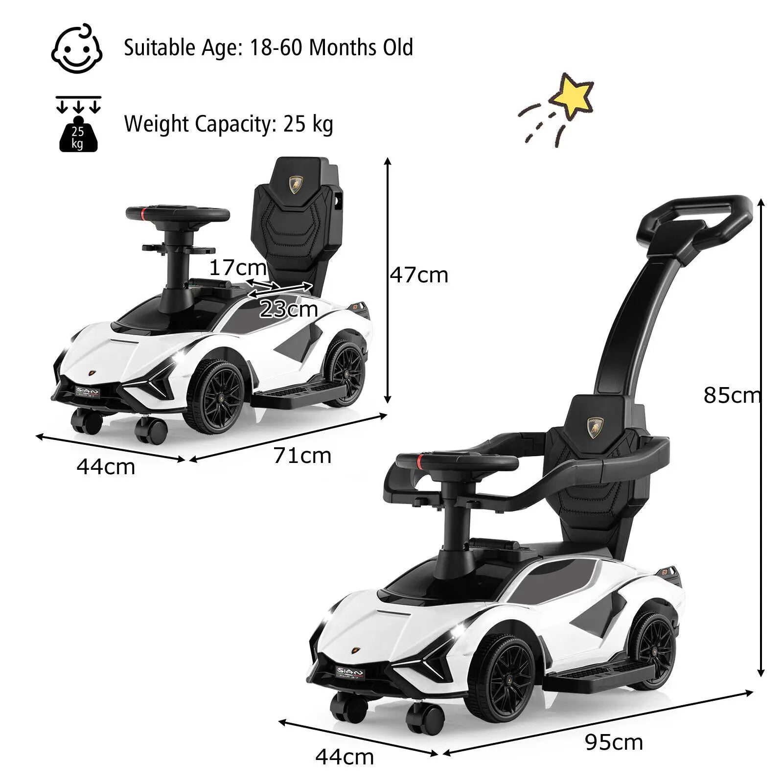 3-in-1 Toddler Ride On Push Car, Kids Licensed Lamborghini Walking Toy with Detachable Guardrails, Universal Steering Wheels, and Hidden Storage (18-60 Months)