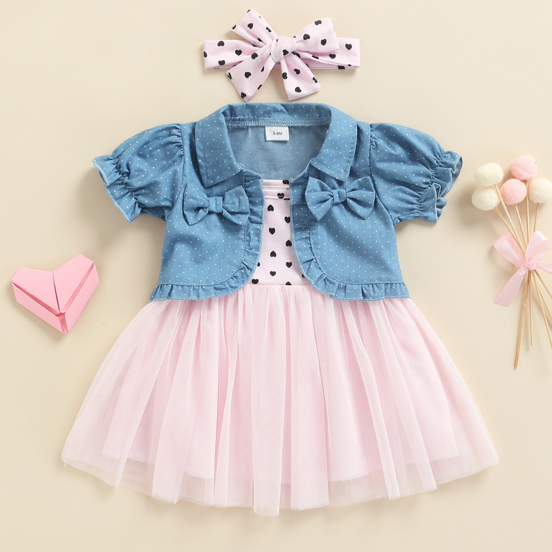 3 Pcs Hearts and Dots Design Baby Girl Summer Dress Outfit