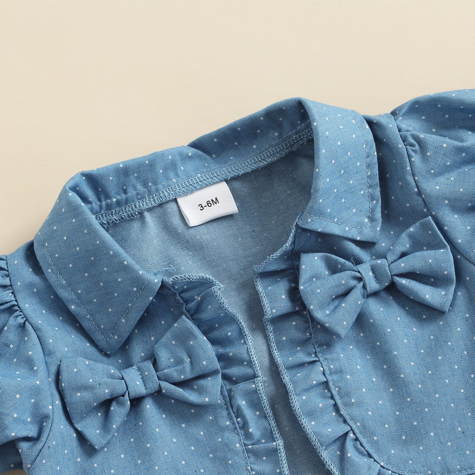 Conjunto de Vestido de Verano para Bebés con Diseño de Corazones y Puntos, 3 Piezas
