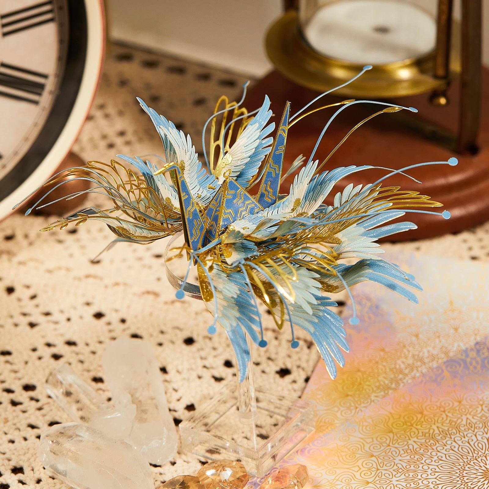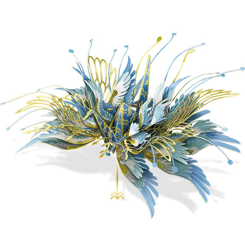 El modelo de metal de ensamblaje 3D Aquarius Crane simula los colores del zodíaco Acuario de manera muy nítida. En astrología, Acuario se considera una constelación activa (positiva).