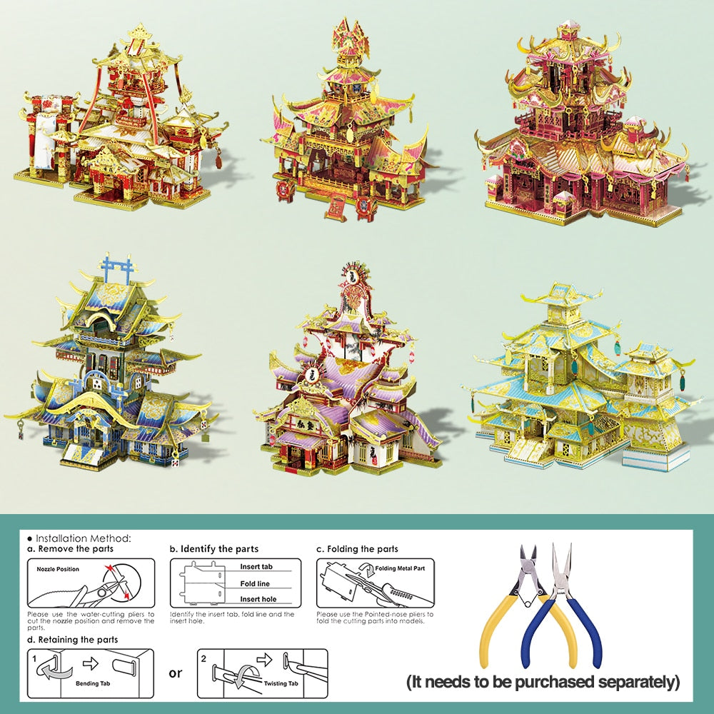 Rompecabezas de metal 3D | Edificios antiguos chinos | juguetes educativos