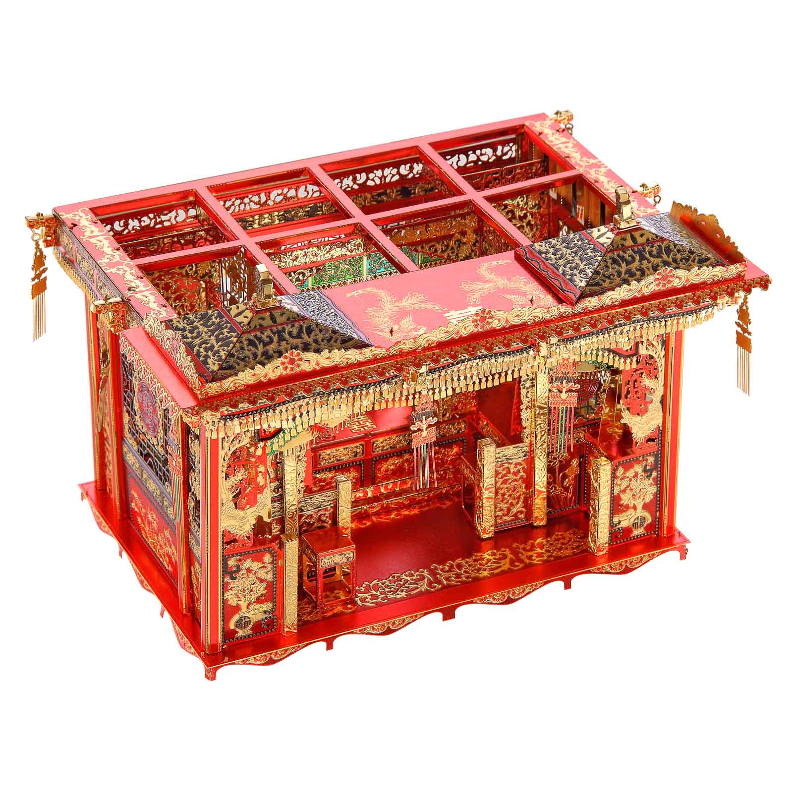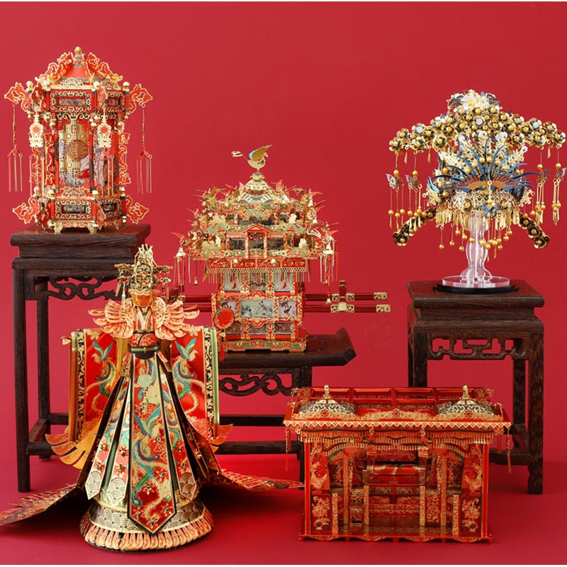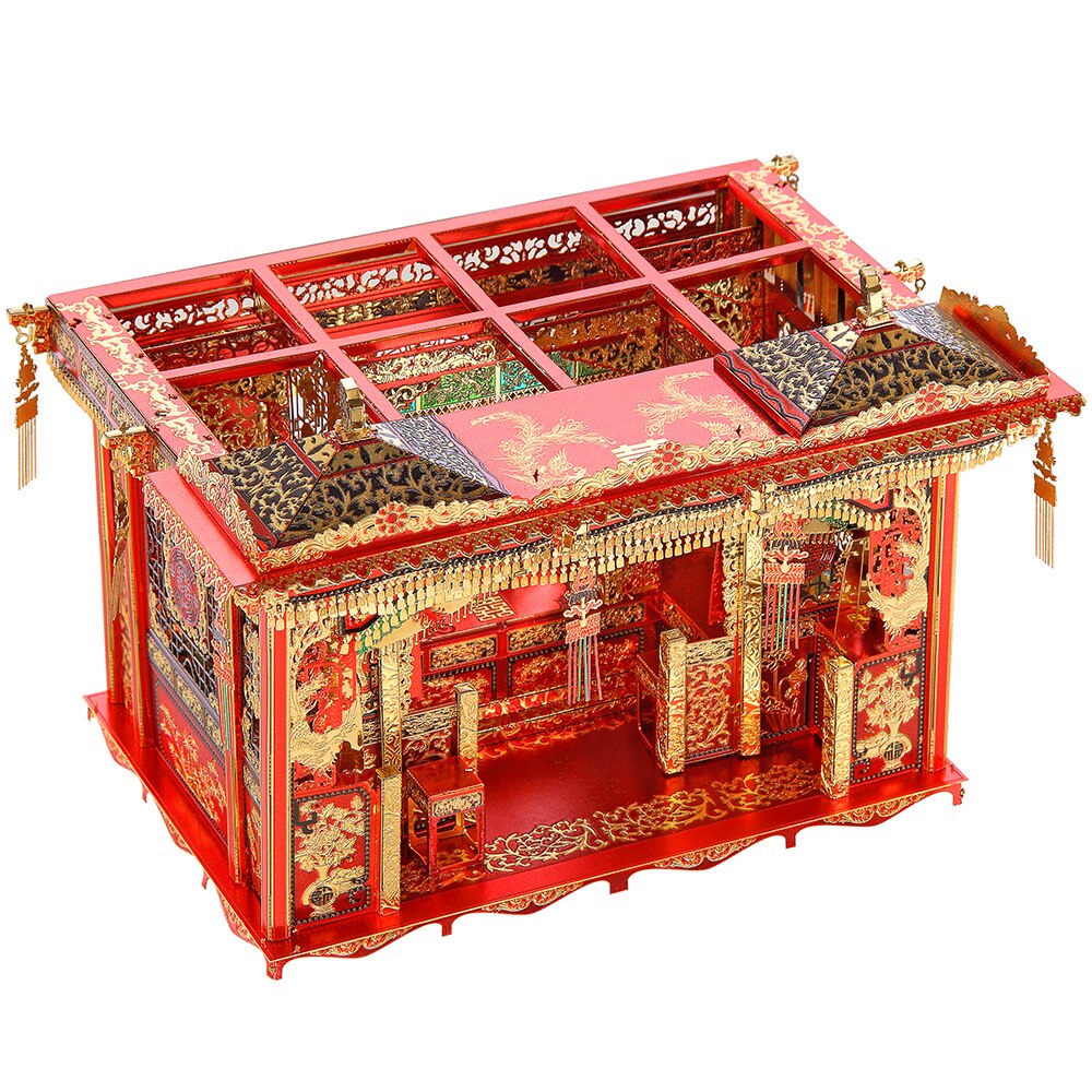 Modelo de montaje de metal 3D, palanquín de flores, vestido de novia, cama de boda, corona de Fénix, linterna. Uno de los elementos indispensables antes del día de la boda en los primeros tiempos de la República de China.