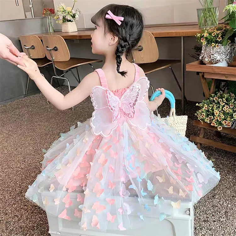 Vestido de princesa con mariposas en 3D: elegancia veraniega para tu pequeña