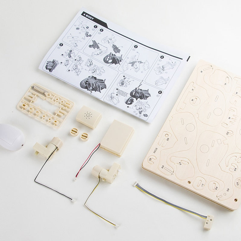 - Este es un dinosaurio robótico de madera que puedes construir con tus propias manos. Podría moverse, caminar y rugir mediante control de sonido después del final.