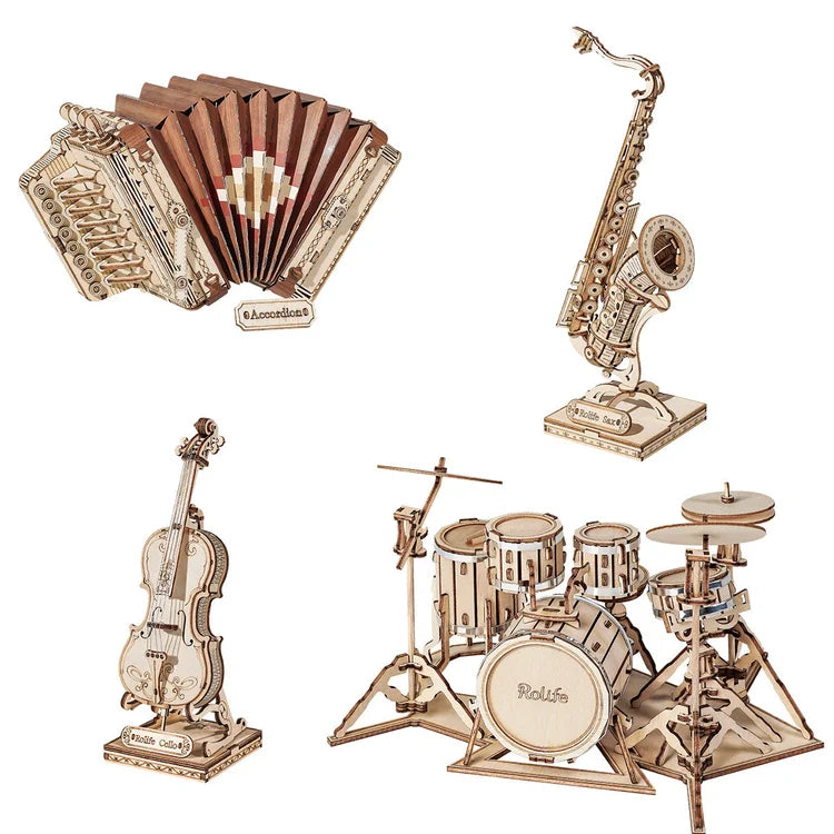 Rompecabezas de madera 3D | Batería Saxofón Acordeón Violonchelo | Regalo para sus hijos y adultos
