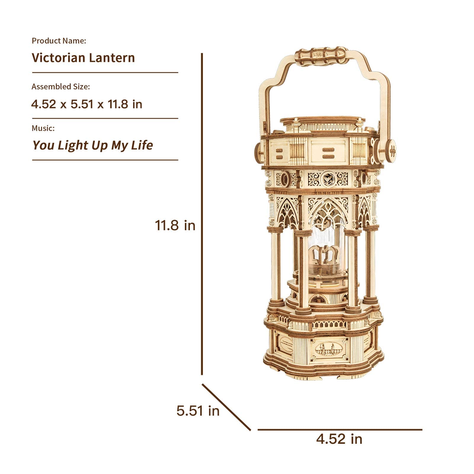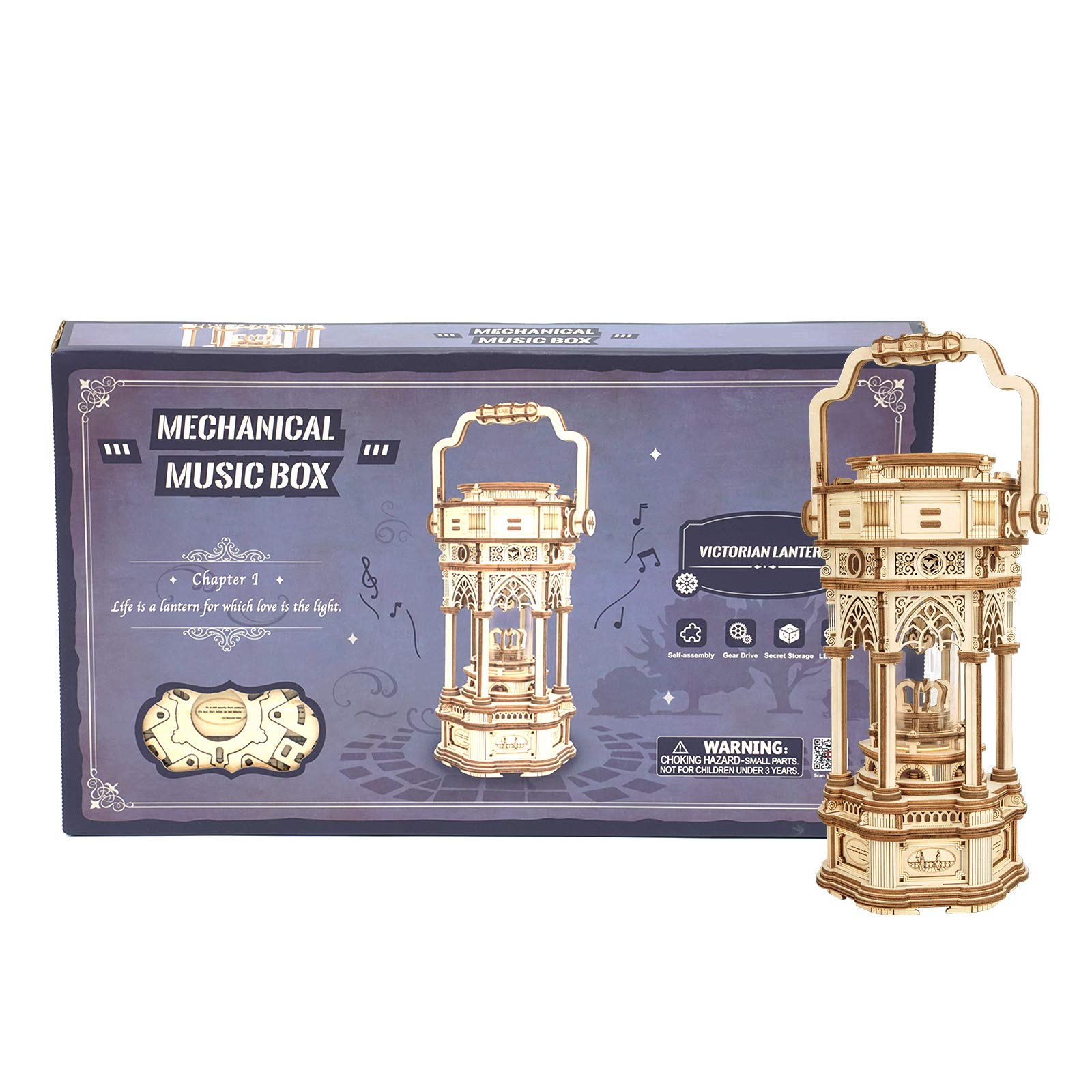 Rompecabezas de madera 3D | Caja de música mecánica con linterna victoriana | Regalo para tus hijos