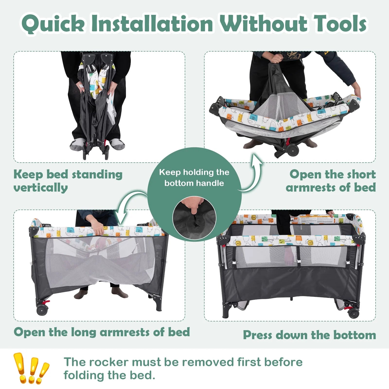 5-in-1 Baby Nursery Center & Pack and Play - Bedside Sleeper, Changing Table, Cradle Swing, Music Mobile