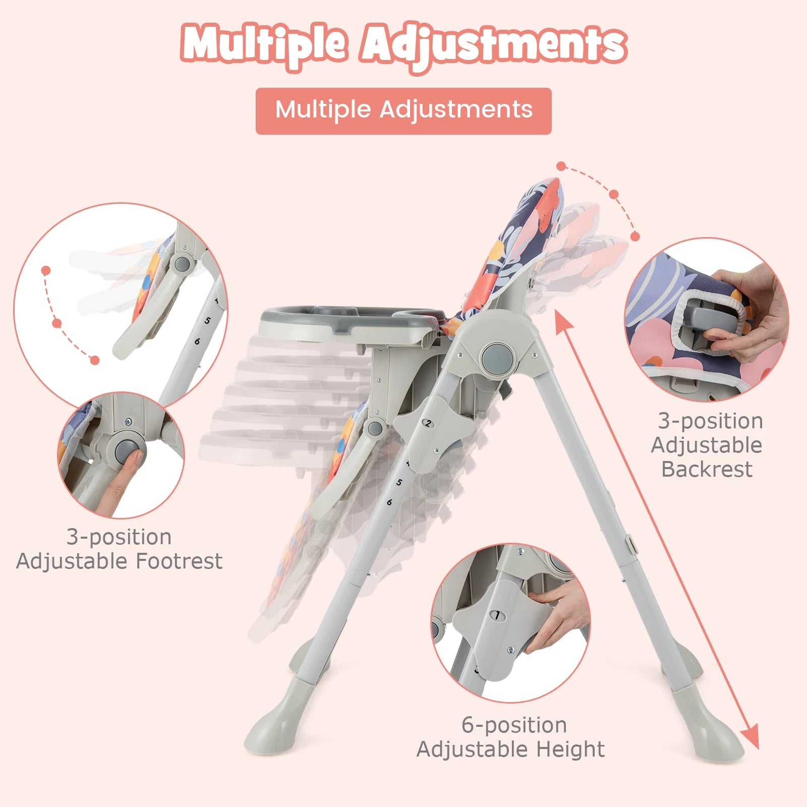 6-in-1 Foldable Baby High Chair - 6 Height Levels, 3 Recline Positions, Washable Tray, Compact Storage