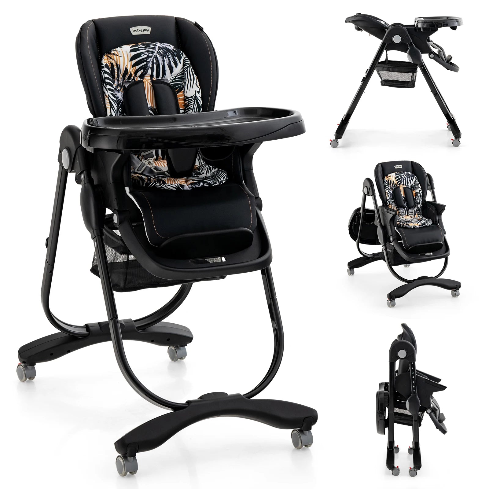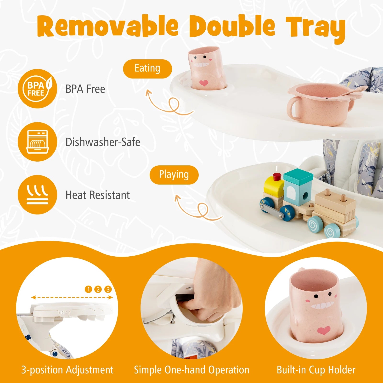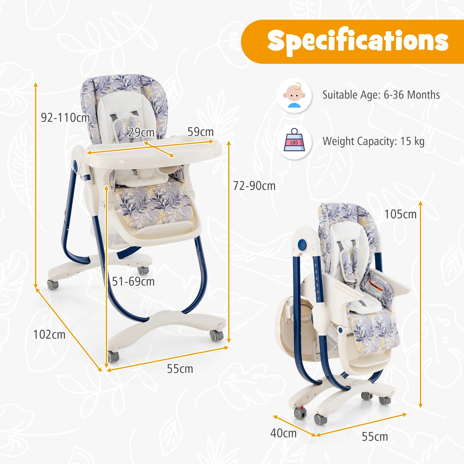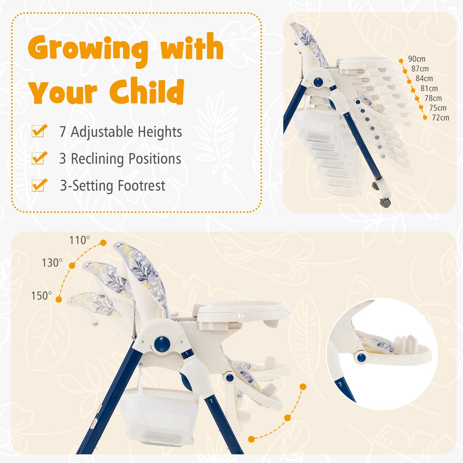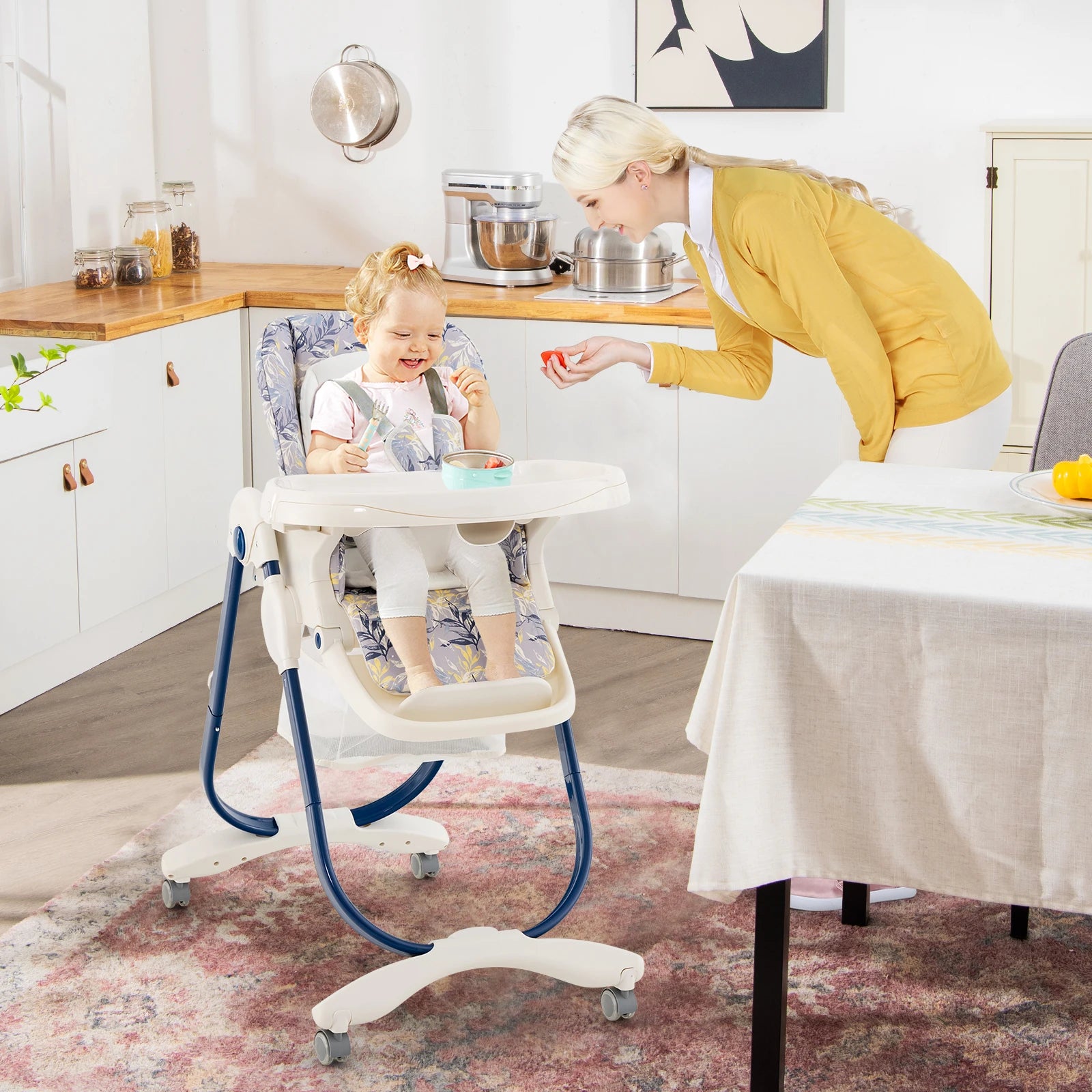 7-in-1 Folding Baby High Chair with 7-Level Height, Recline Backrest, Removable Double Tray (Dishwasher-Safe), and Lockable Wheels (6–36 Months)