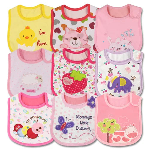 Juego de 9 baberos para niñas y niños - impermeables, delantal con estampado animado, toalla para la cena, baberos, bandanas y paños para eructos