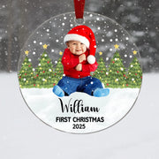 Adorno circular acrílico personalizado “La Primera Navidad del Bebé” – Foto, nombre y color de texto a elegir | Recuerdo para recién nacidos ideal para el árbol y la decoración navideña
