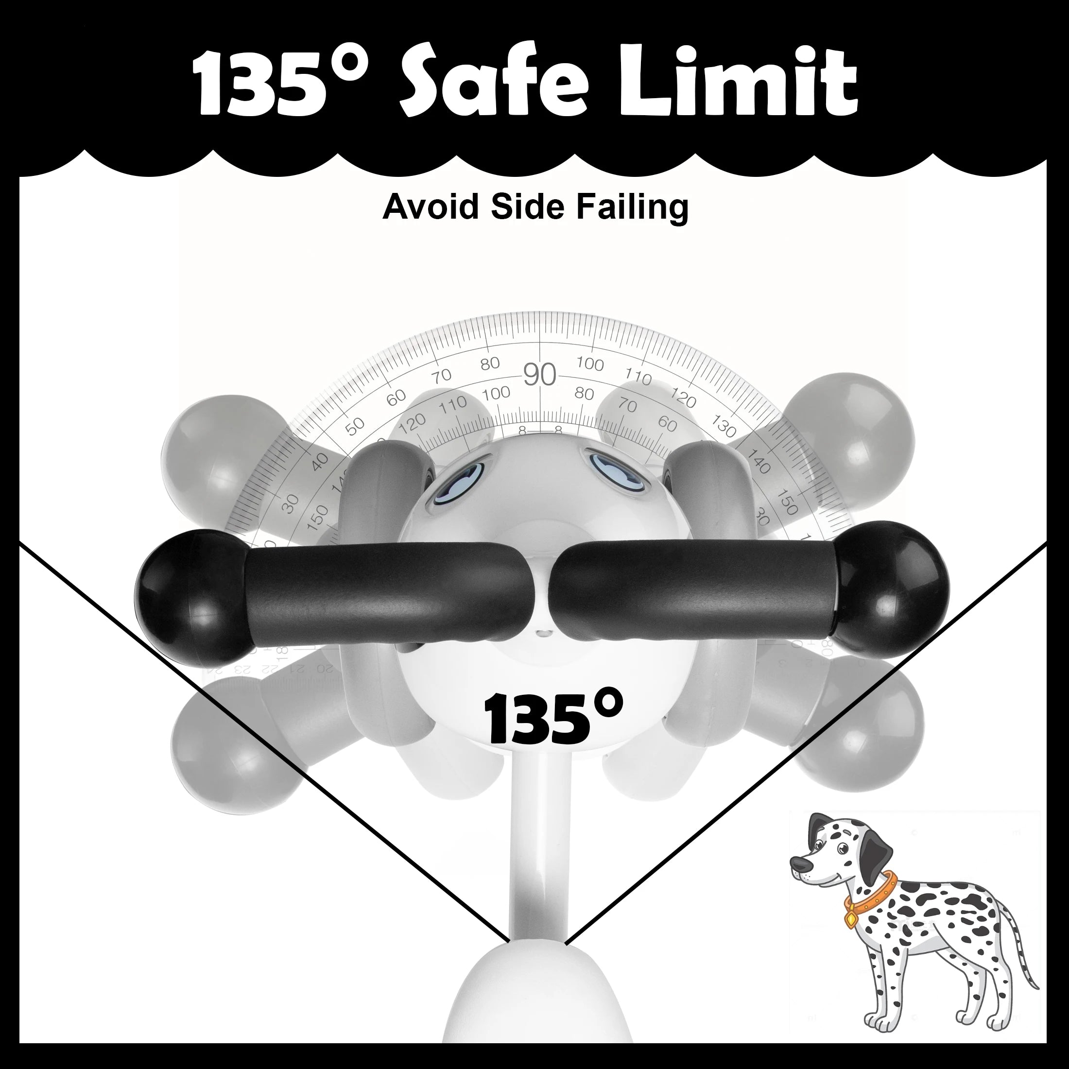 Anti-Tipping: Limited 135-degree turning radius prevents sideways falling.