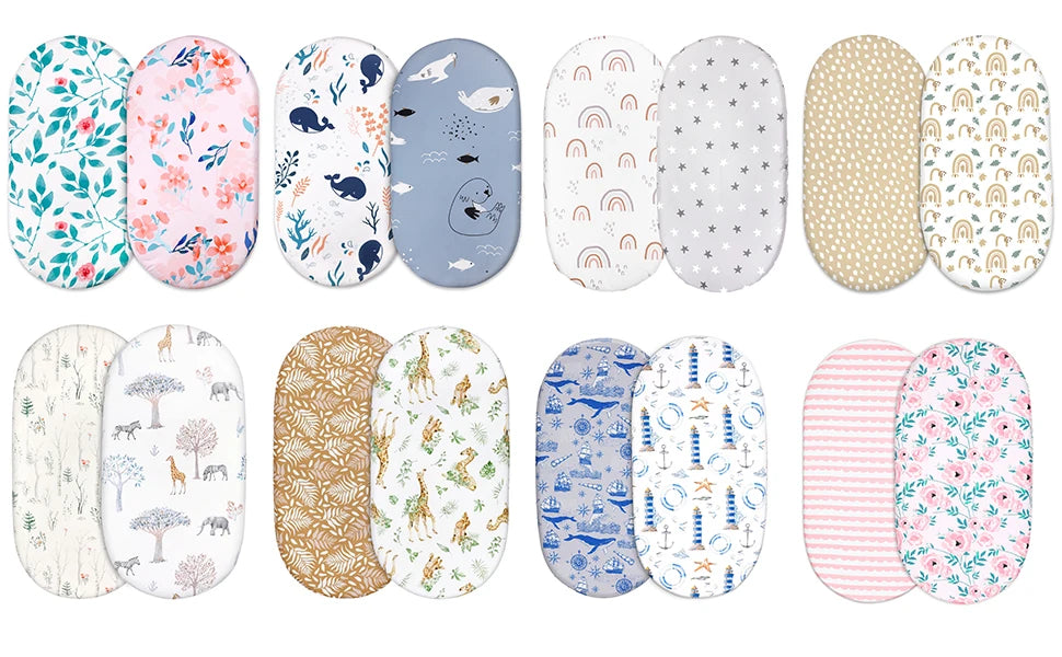 Talla única: nuestras sábanas vienen en un tamaño universal clásico y se adaptan a la mayoría de moisés, tumbonas, cunas, colchones y varias formas de colchones, incluidos estándar, ovalado, redondo, rectangular y de reloj de arena.