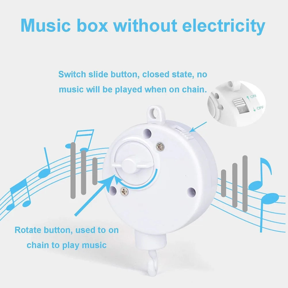 🎶 Creciendo con melodías: la estructura de accionamiento sinuoso garantiza una melodía atemporal para el crecimiento de su bebé. No se necesitan baterías, lo que enfatiza la simplicidad y el respeto al medio ambiente en el diseño. Es un compañero musical que evoluciona con tu bebé.