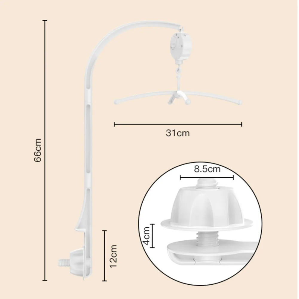 Eleve el mundo de su bebé con nuestro soporte para móvil para cuna, una combinación armoniosa de música, movimiento y seguridad. Diseñado para alegrar la cuna, la cama o el cochecito de tu bebé, este soporte para móvil está elaborado con cuidado y creatividad.