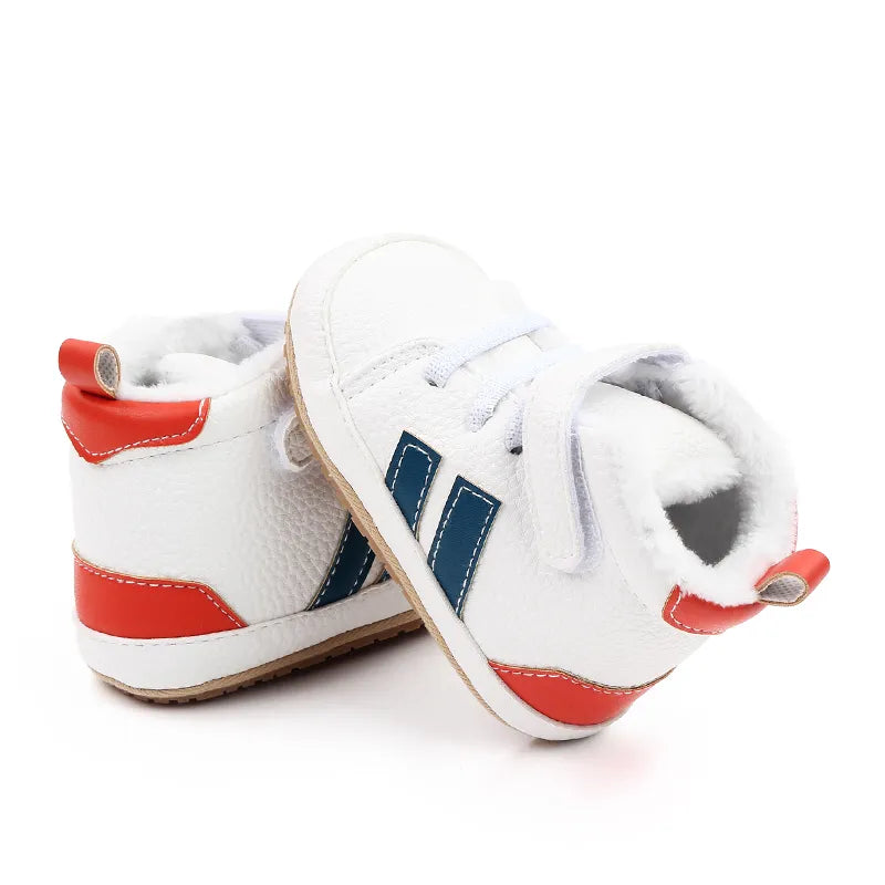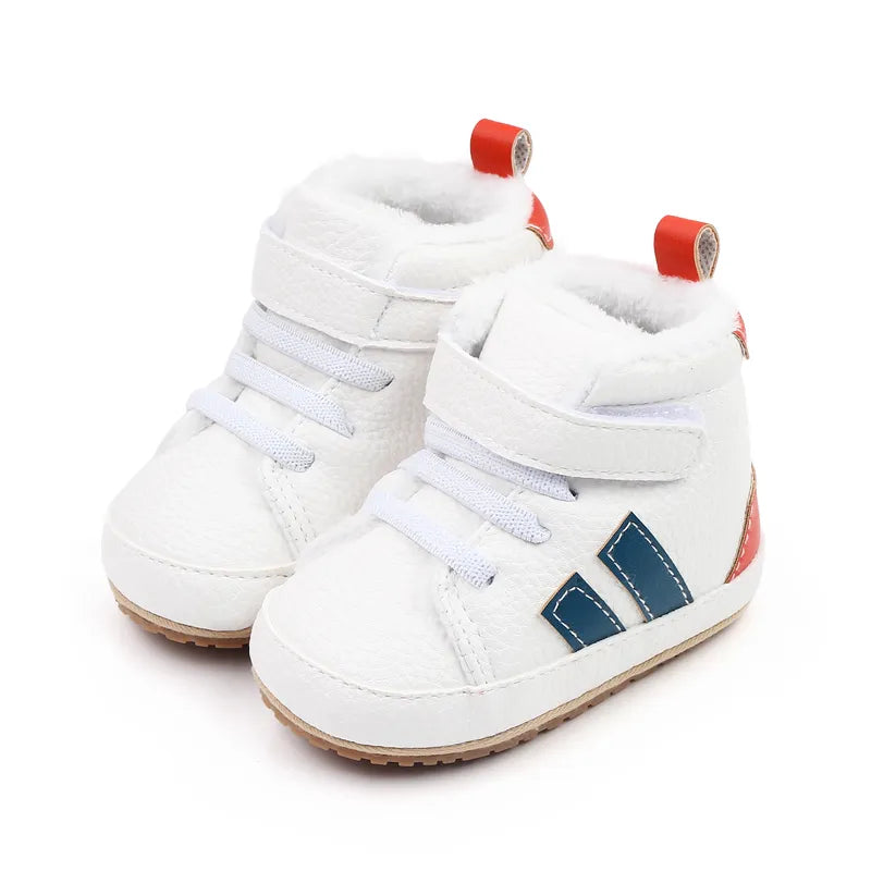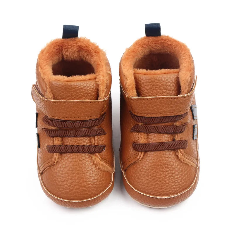 Primeros zapatos para caminar para bebé: suela de PU antideslizante cubierta por el tobillo