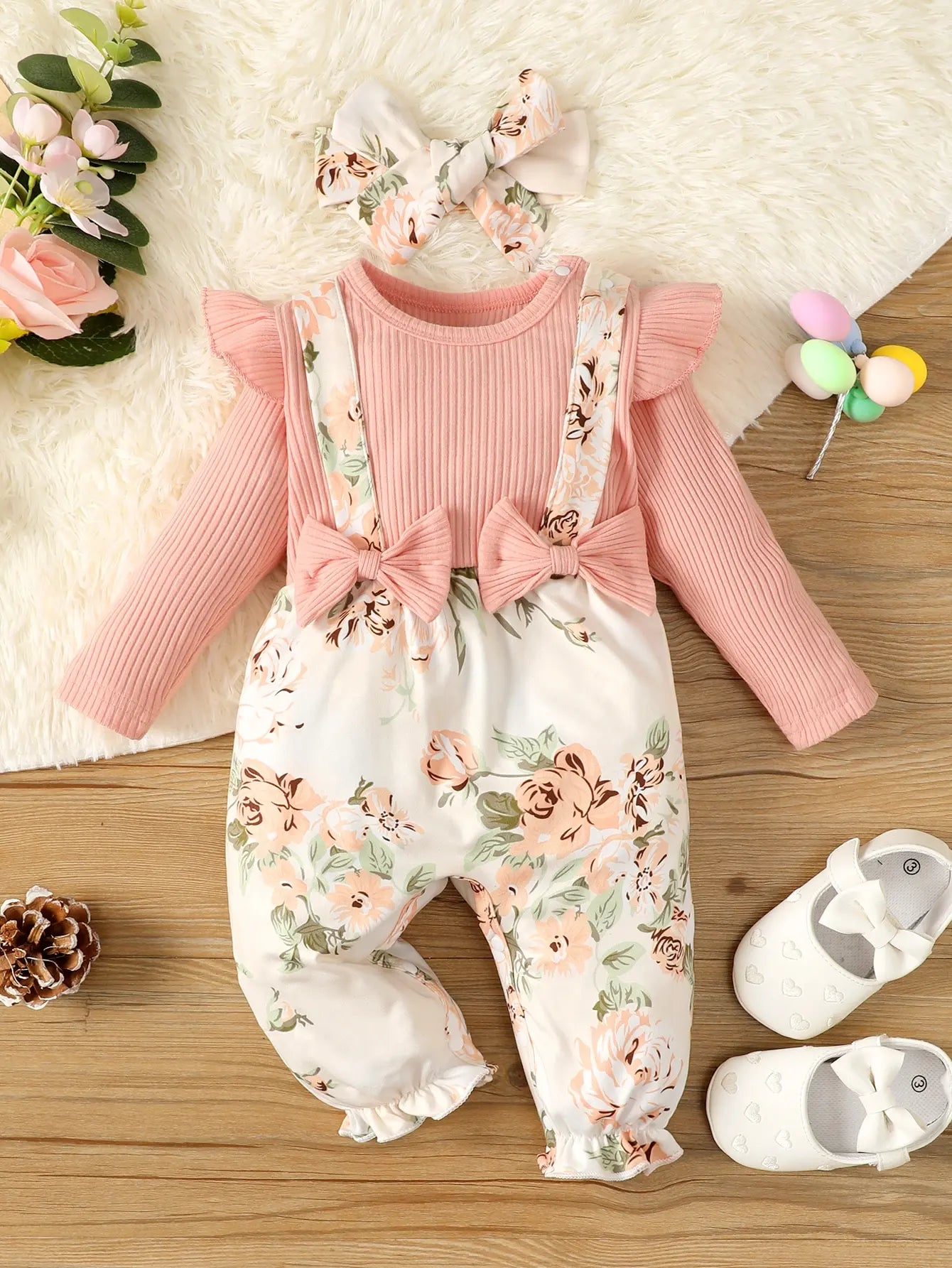 Presentamos nuestro adorable conjunto de una pieza con estampado de flores rosas para niña: ¡perfecto para primavera y otoño!