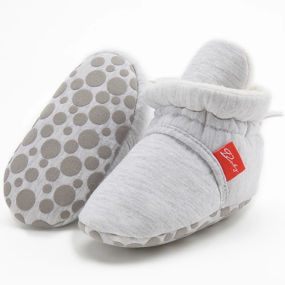 Mejora la primera experiencia de caminar de tu bebé con nuestros zapatos tipo calcetín con suela de algodón. Al brindar comodidad, estilo y funcionalidad, estos zapatos son imprescindibles para todos los padres. Explora lo último en moda para bebés. ¡Pide ahora un calzado adorable y práctico que complemente el viaje de tu bebé al mundo!