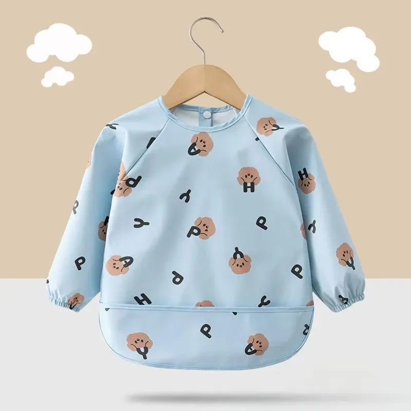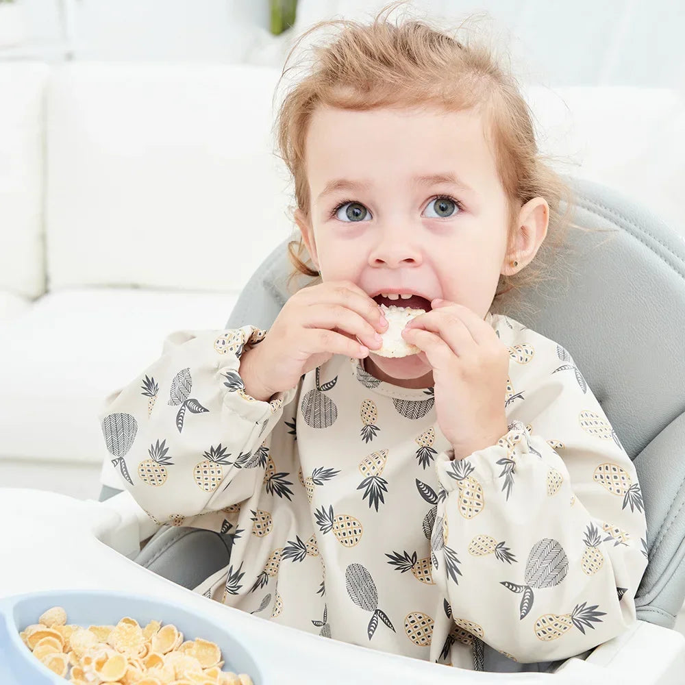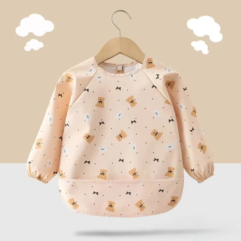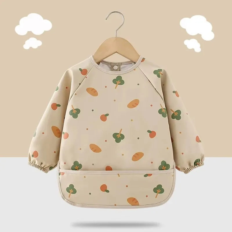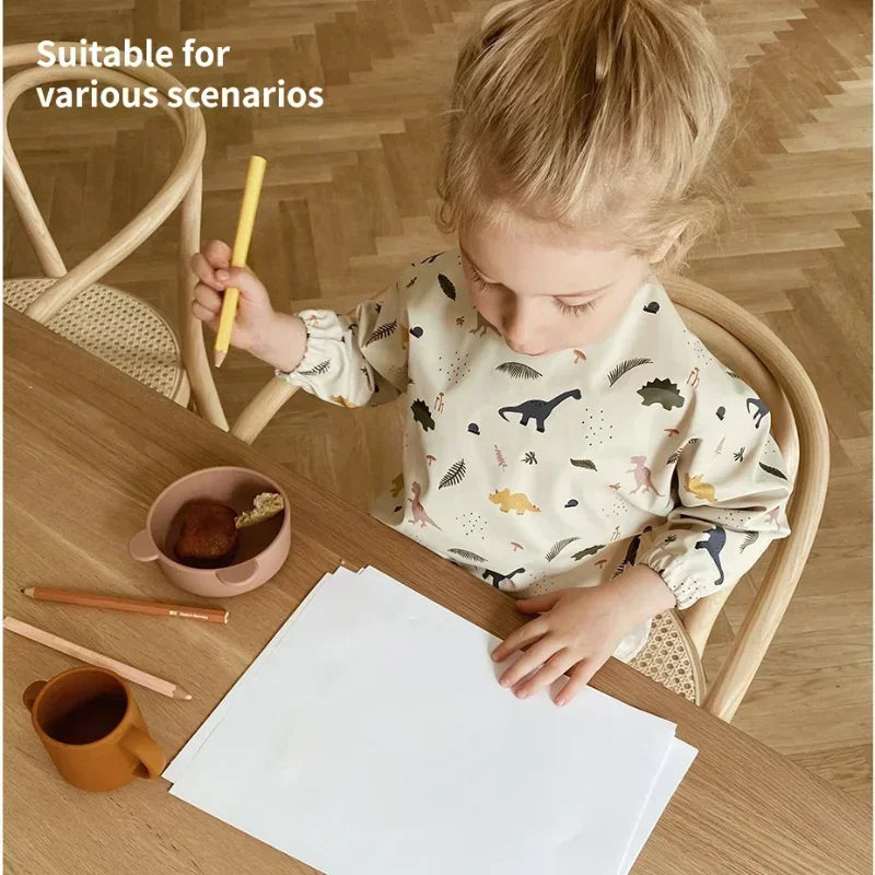 Babero suave e impermeable para bebés - Delantal de manga larga ajustable para niños