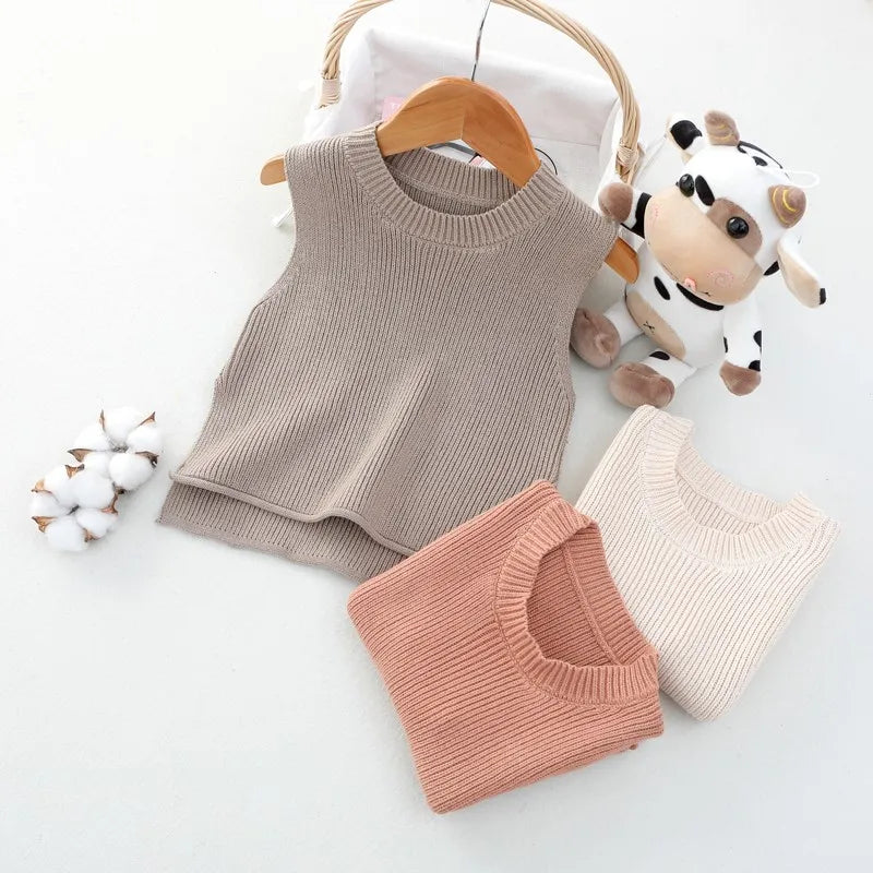 Presentamos nuestro chaleco de punto liso sin mangas para bebé: ropa de abrigo de otoño para niños pequeños