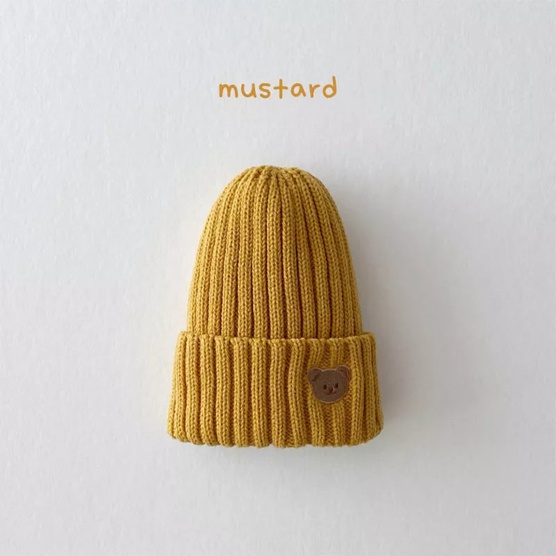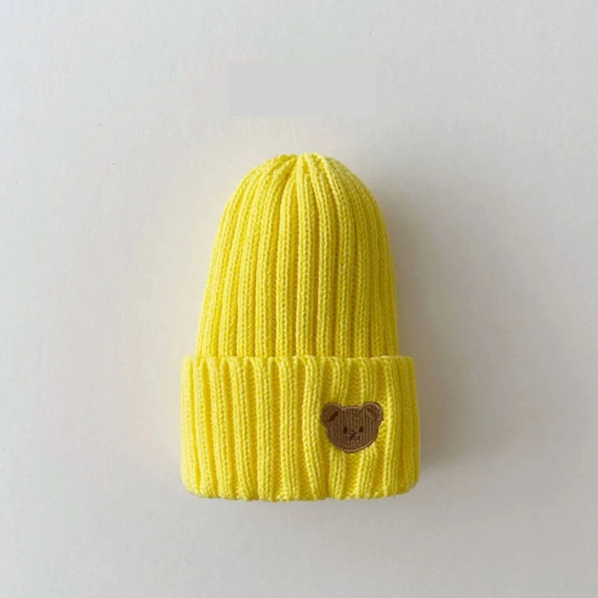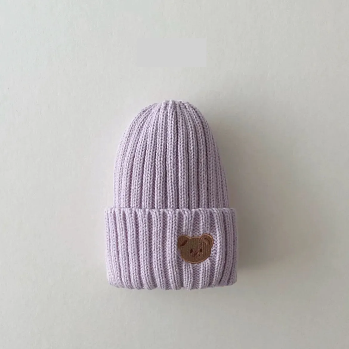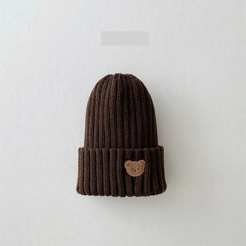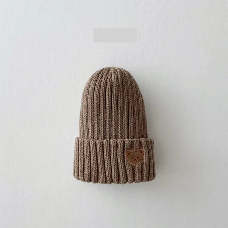 Gorros de bebé tejidos con bordado de oso - Gorros lindos de dibujos animados
