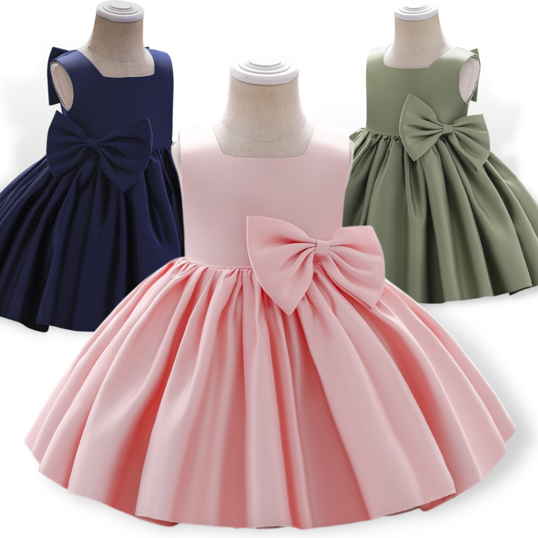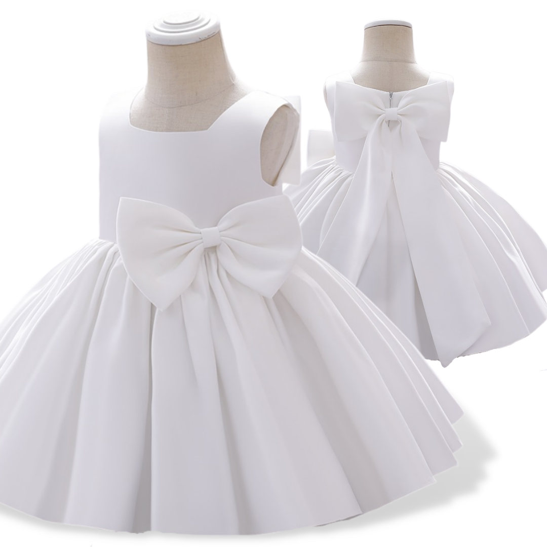 Vestido de fiesta sin mangas sedoso para bebés con diseño de lazo grande