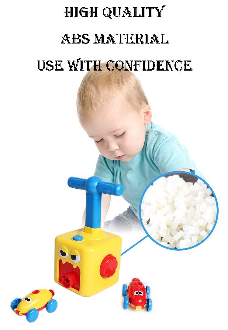 Súper fácil de usar en dos pasos. Simplemente infla el globo con aire, presiona el botón and watch the car take off. Accelerating at speeds like never before. This toy has no pointy edges nor small parts that can endanger your kids. It’s safe and fun to play with, perfect for small children.