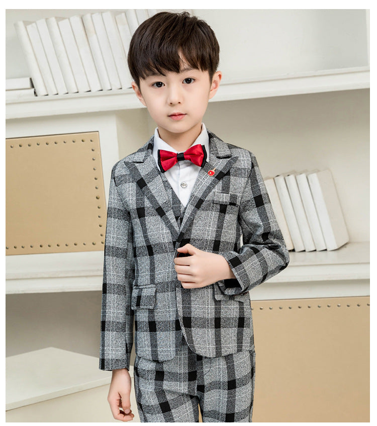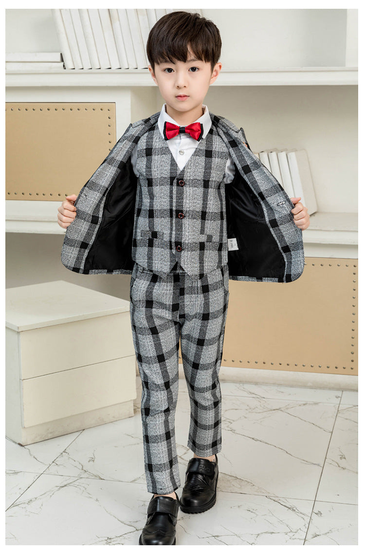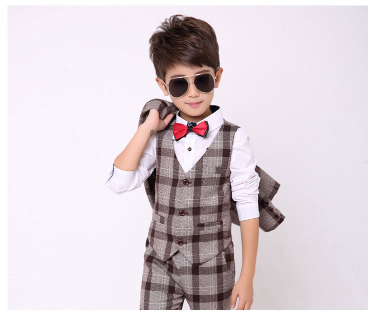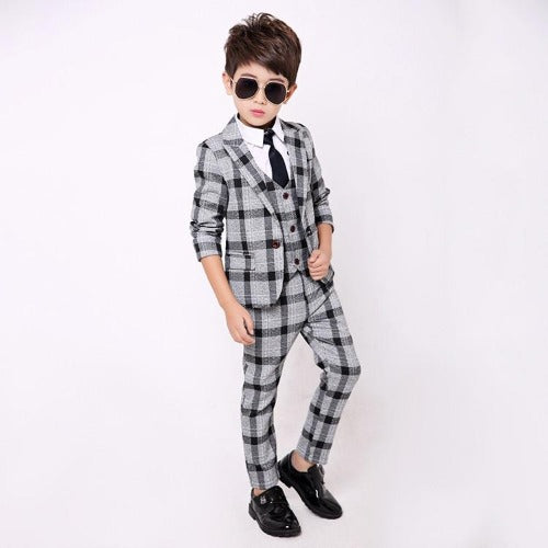 Checkered Blazer Boy Tuxedo 3 Pcs Suit