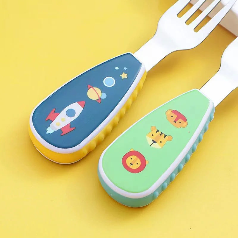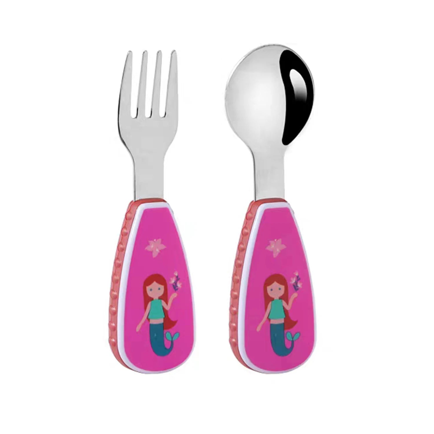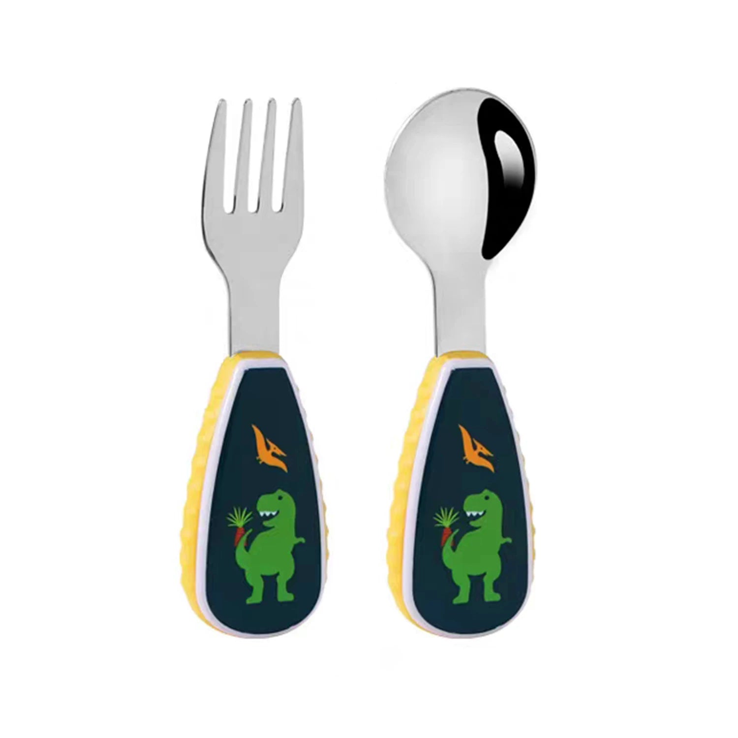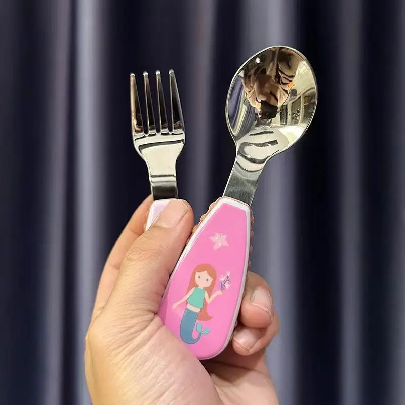 Set de tenedor y cuchara infantil de dibujos animados - Utensilios de entrenamiento