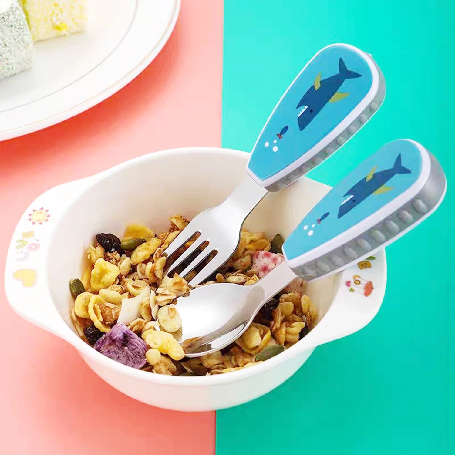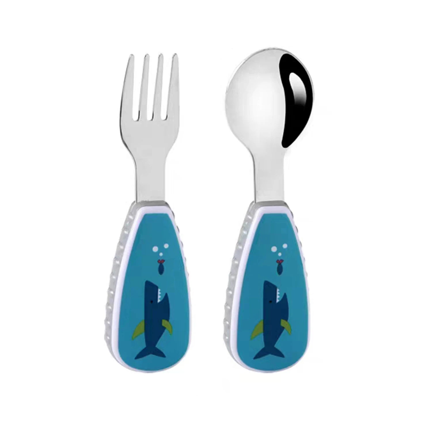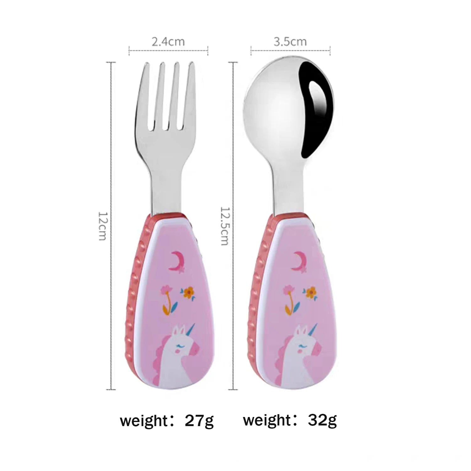 Set de tenedor y cuchara infantil de dibujos animados - Utensilios de entrenamiento