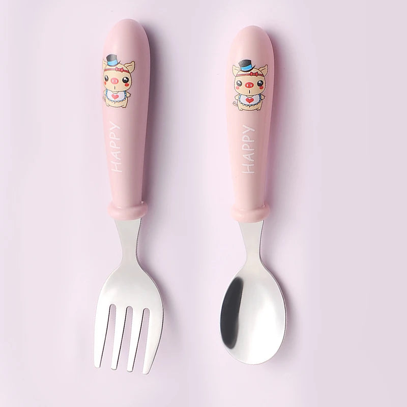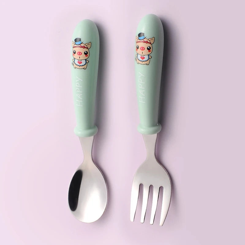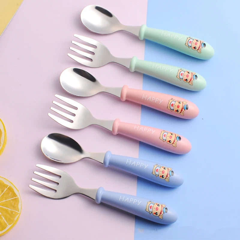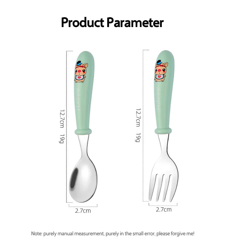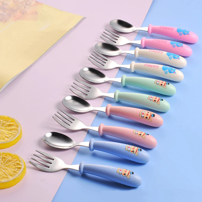 Presentamos el práctico juego de vajilla para niños: dúo de tenedor y cuchara para niños pequeños
