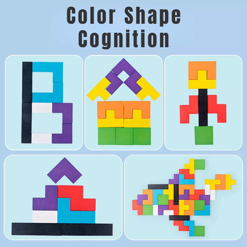 Colorido rompecabezas de madera Tangram en 3D: diversión educativa para niños