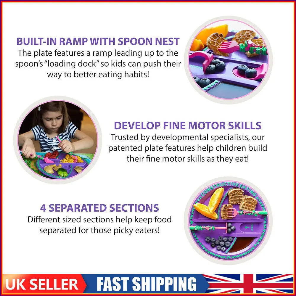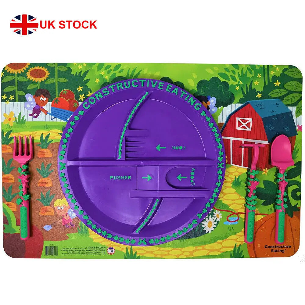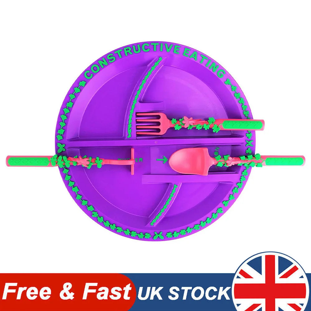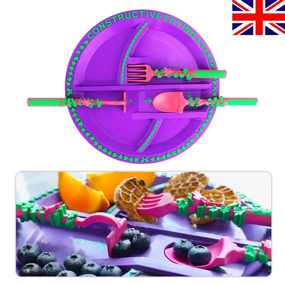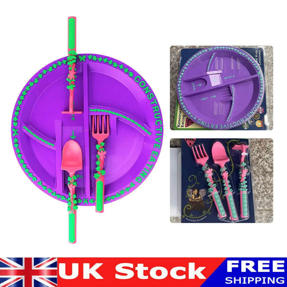 Constructive Eating Utensil Set and Plate for Kids, Dinneractive Fairy/Vines Themed Plate with Fork and Spoon, Making Mealtimes Fun and Engaging (BPA-Free)