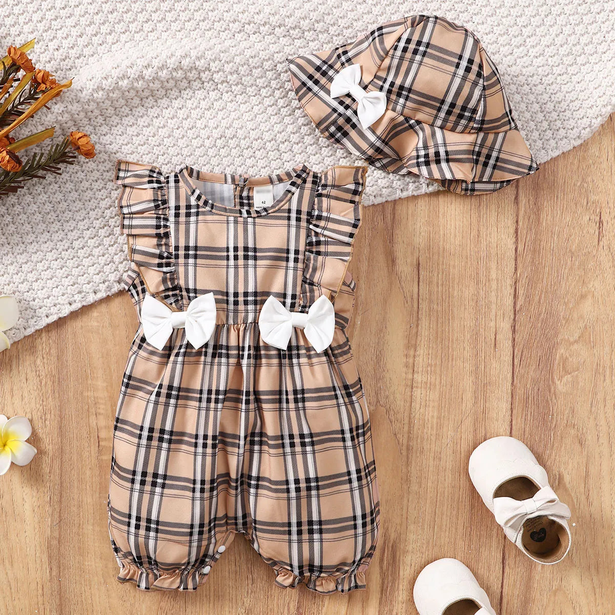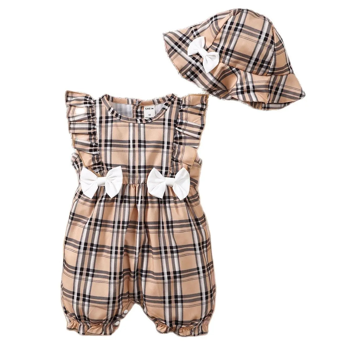 Lindo conjunto de mameluco de verano a cuadros para niñas recién nacidas