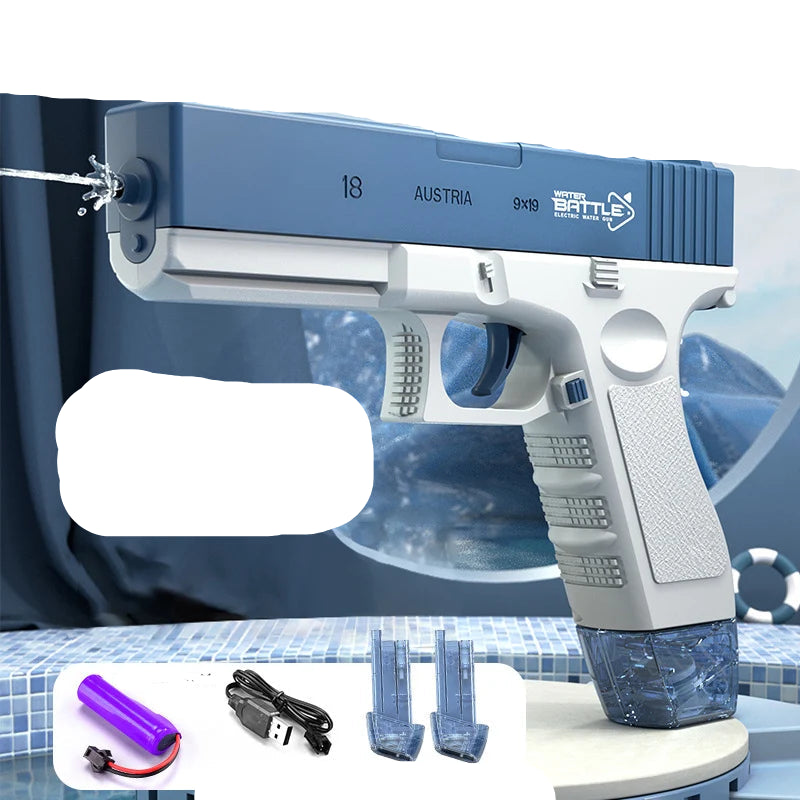 Impulsada por una batería de litio de 3.7V (incluida), esta pistola de agua ofrece rociado automático de alta velocidad, lo que permite a los niños dominar las peleas de agua con solo apretar el gatillo. -
