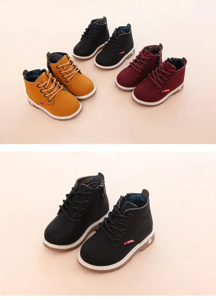 Botas de invierno de cuero de moda: zapatos casuales y antideslizantes para niños (tallas 21-30)