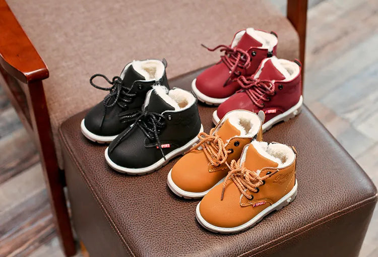 ¡Entra en estilo con nuestras botas de invierno de cuero de moda para niños!