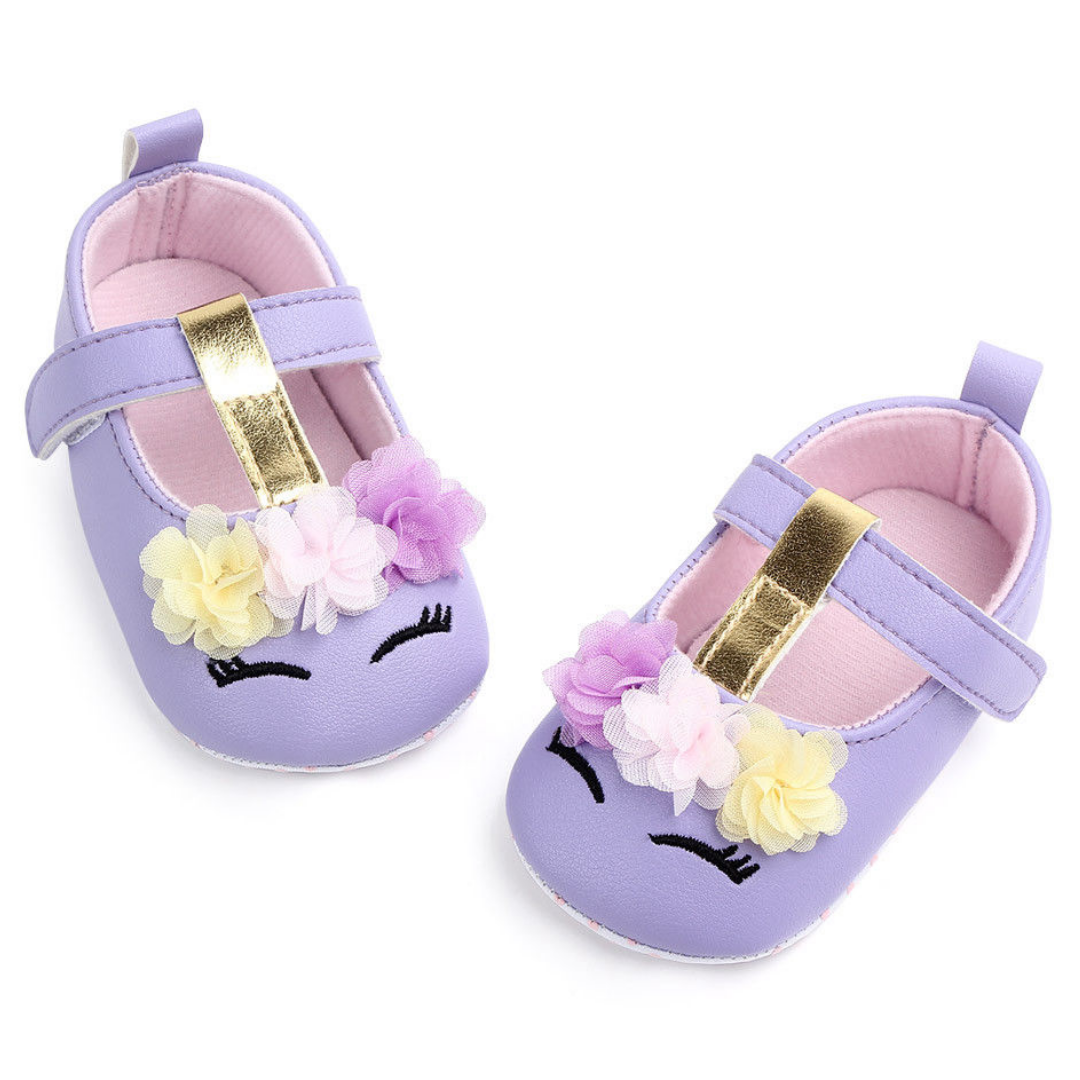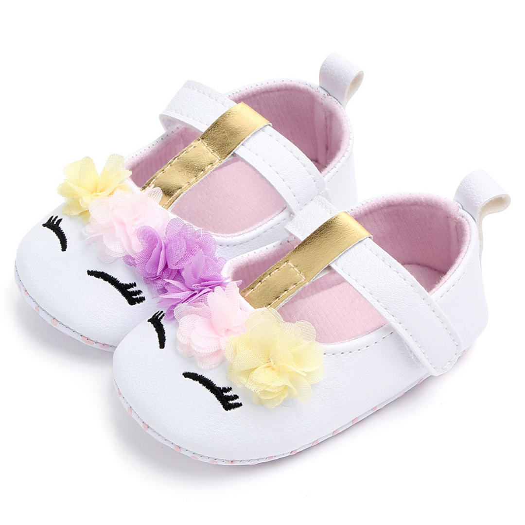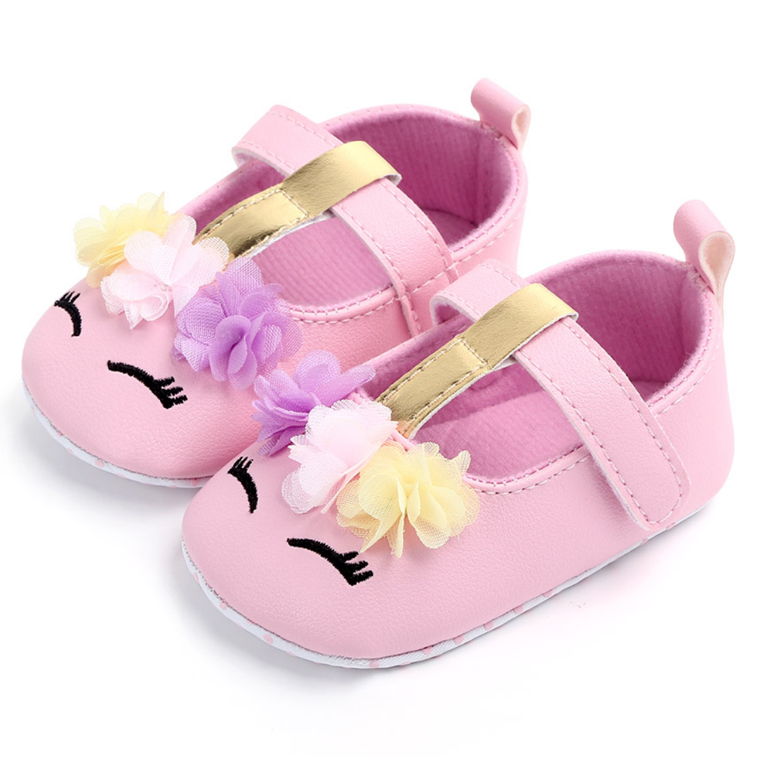 Zapatos de primer andador para niña con suela suave y unicornio de flores