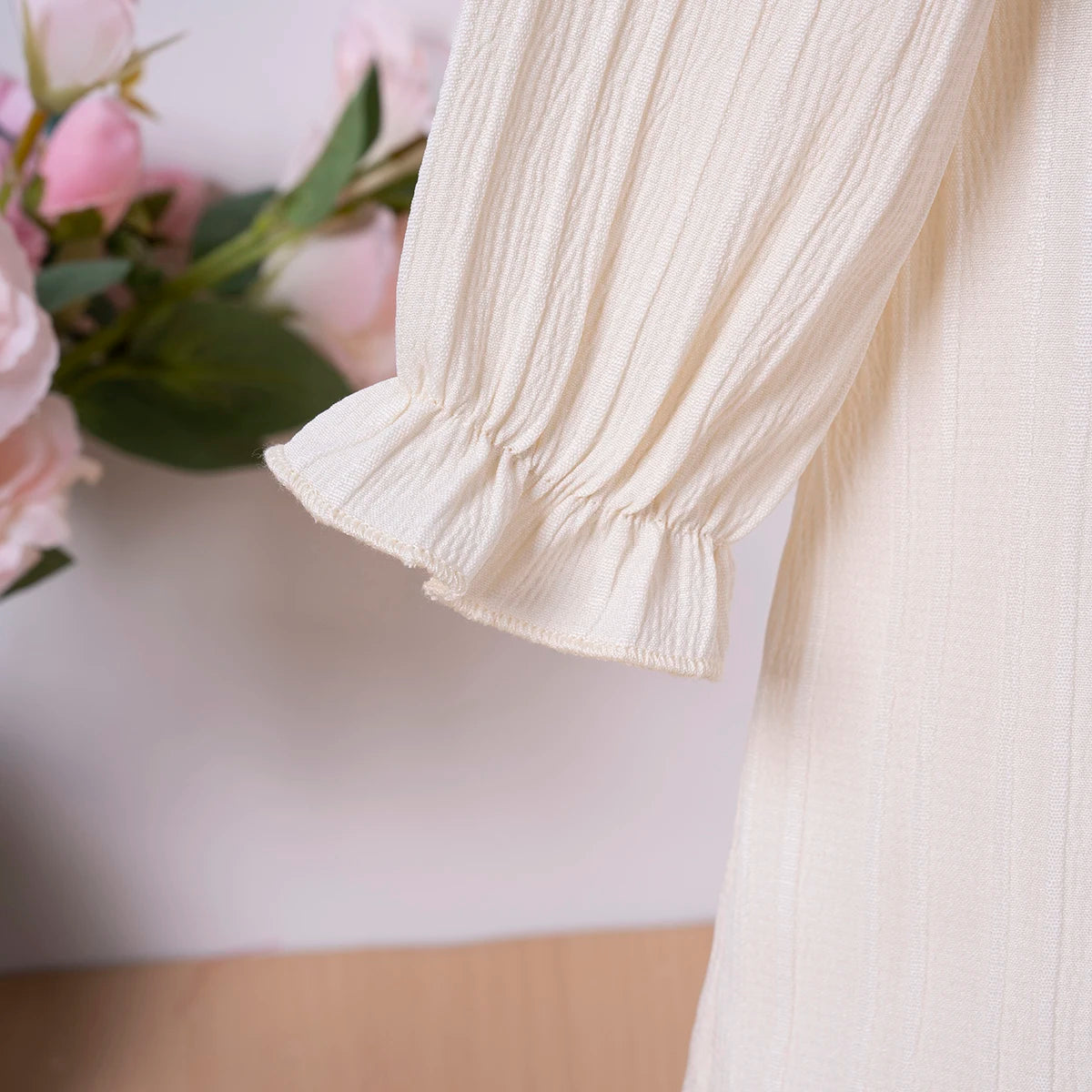 Mangas largas: Diseñado con mangas largas, este vestido brinda mayor calidez y cobertura, lo que lo hace adecuado para temporadas de transición como primavera y otoño.