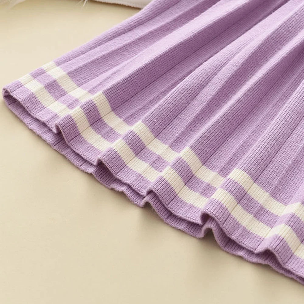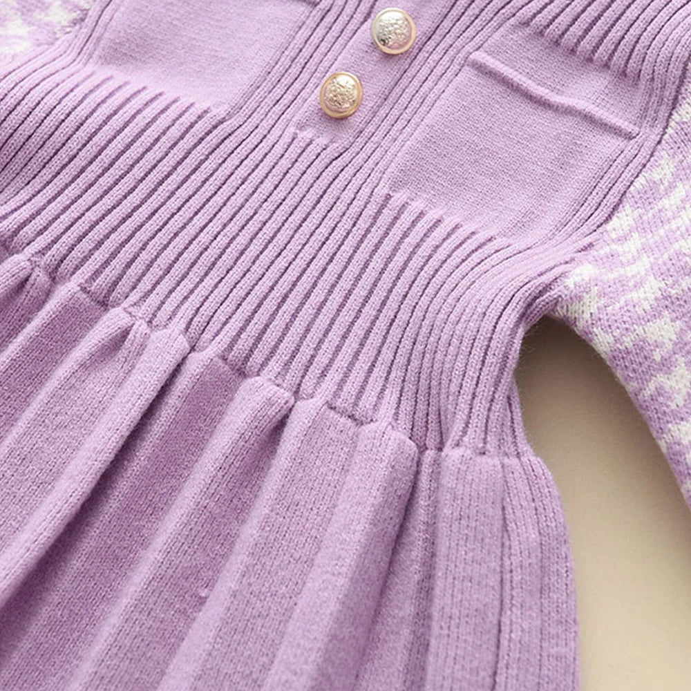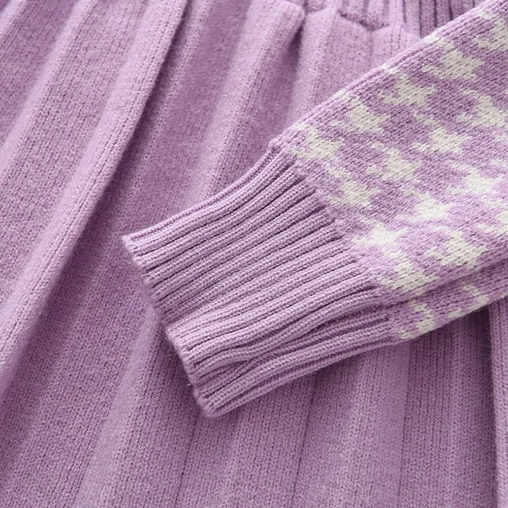 El largo por encima de la rodilla añade un toque divertido y elegante al guardarropa de invierno de su hijo. Déjala girar con estilo y abraza la magia del invierno con nuestro encantador vestido estilo suéter.