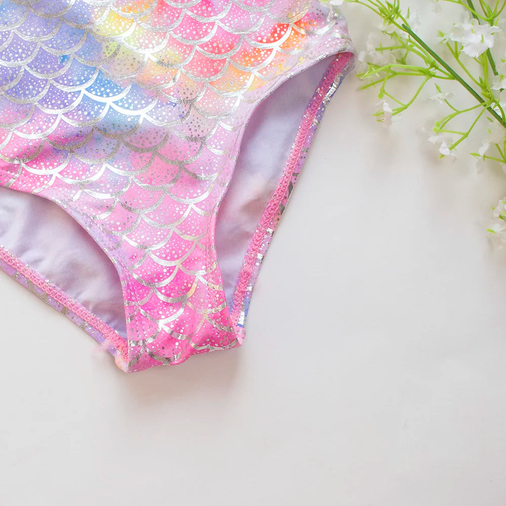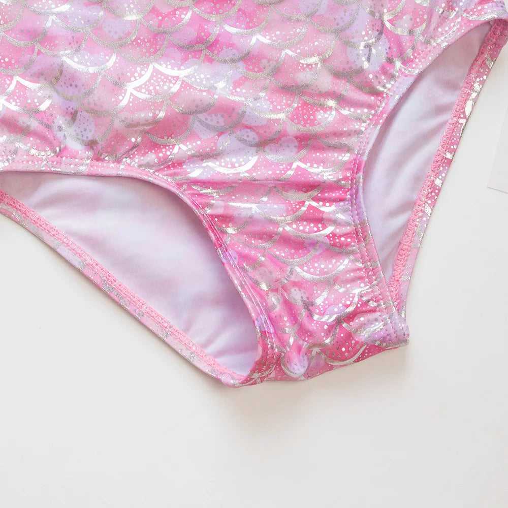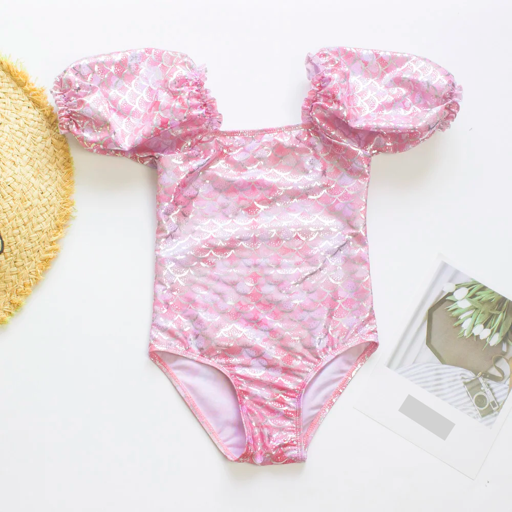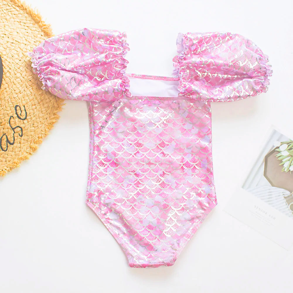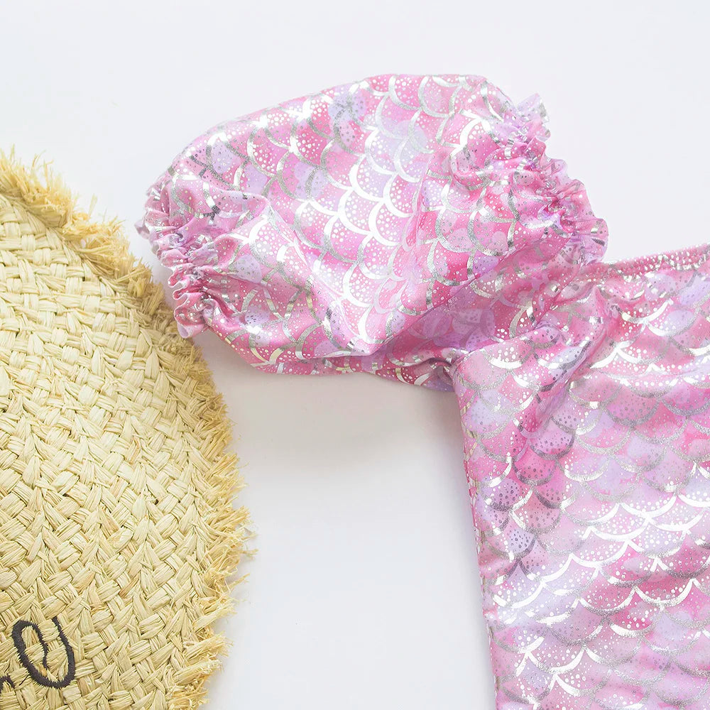 Presentamos nuestro impresionante traje de baño para niñas con mangas abullonadas y degradados: ¡traje de baño de sirena!