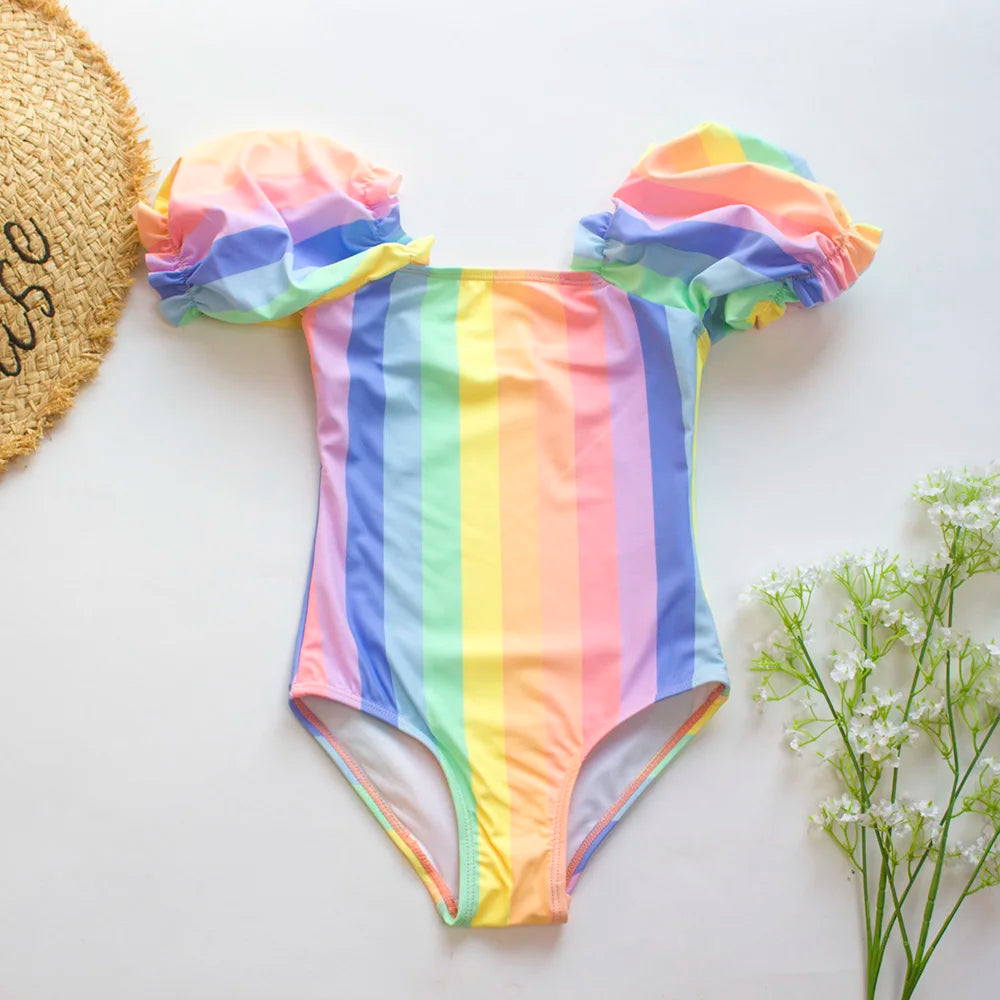 - Con mangas abullonadas , este traje de baño irradia encanto y sofisticación, dándole a su hijo un aspecto moderno y al mismo tiempo brinda un poco de cobertura adicional para los hombros. Las mangas abullonadas añaden un elemento divertido y caprichoso al diseño, perfecto para los pequeños a quienes les encanta expresar su estilo.