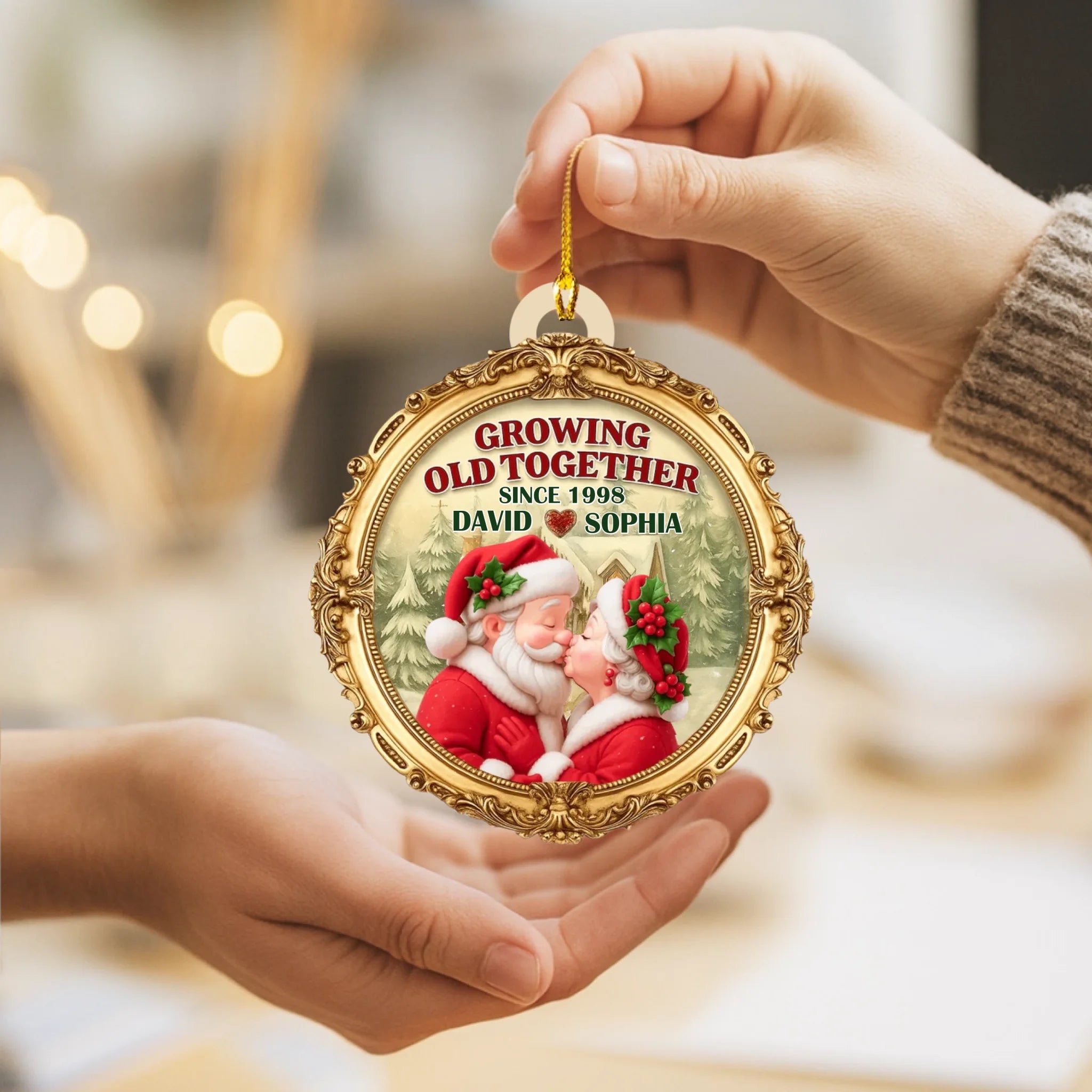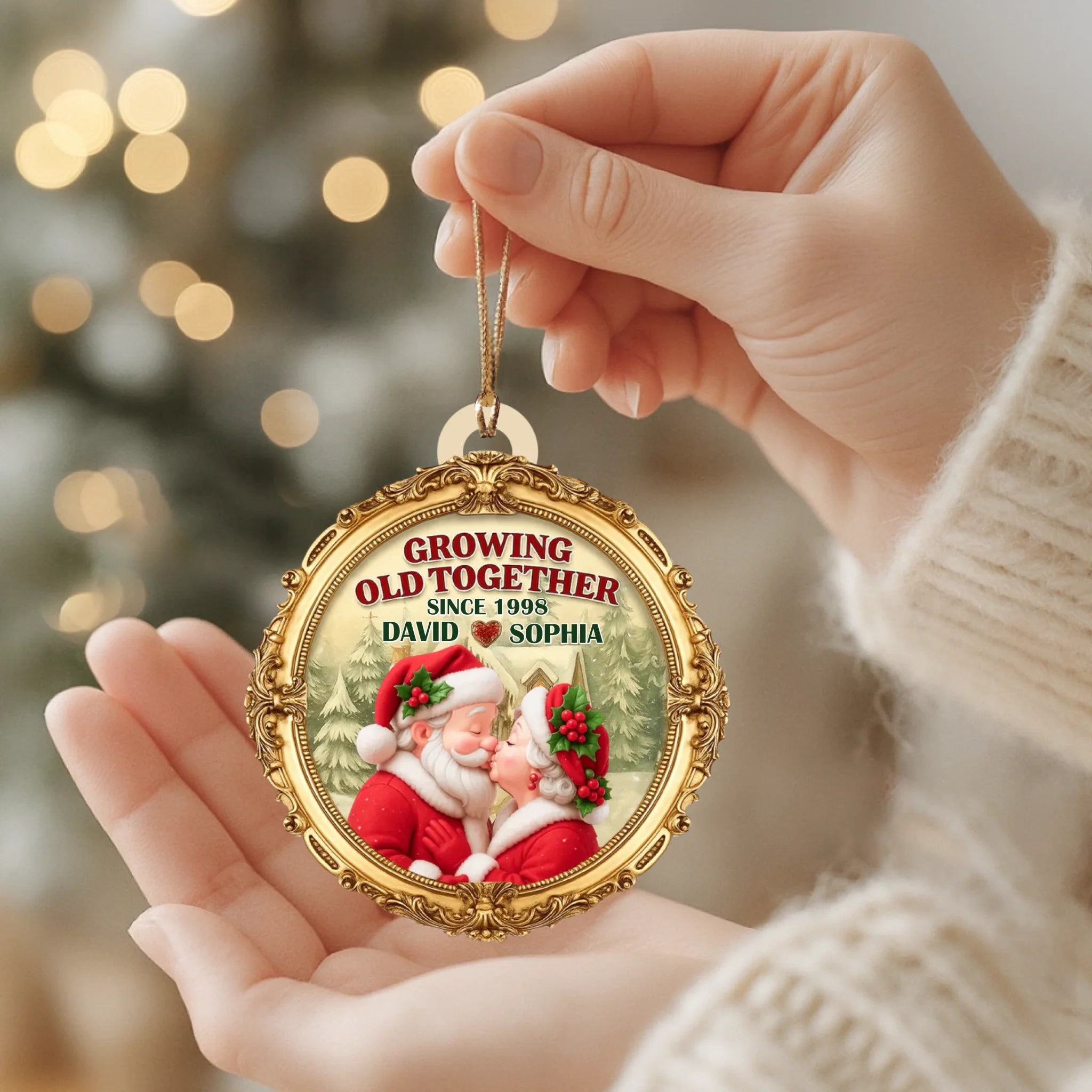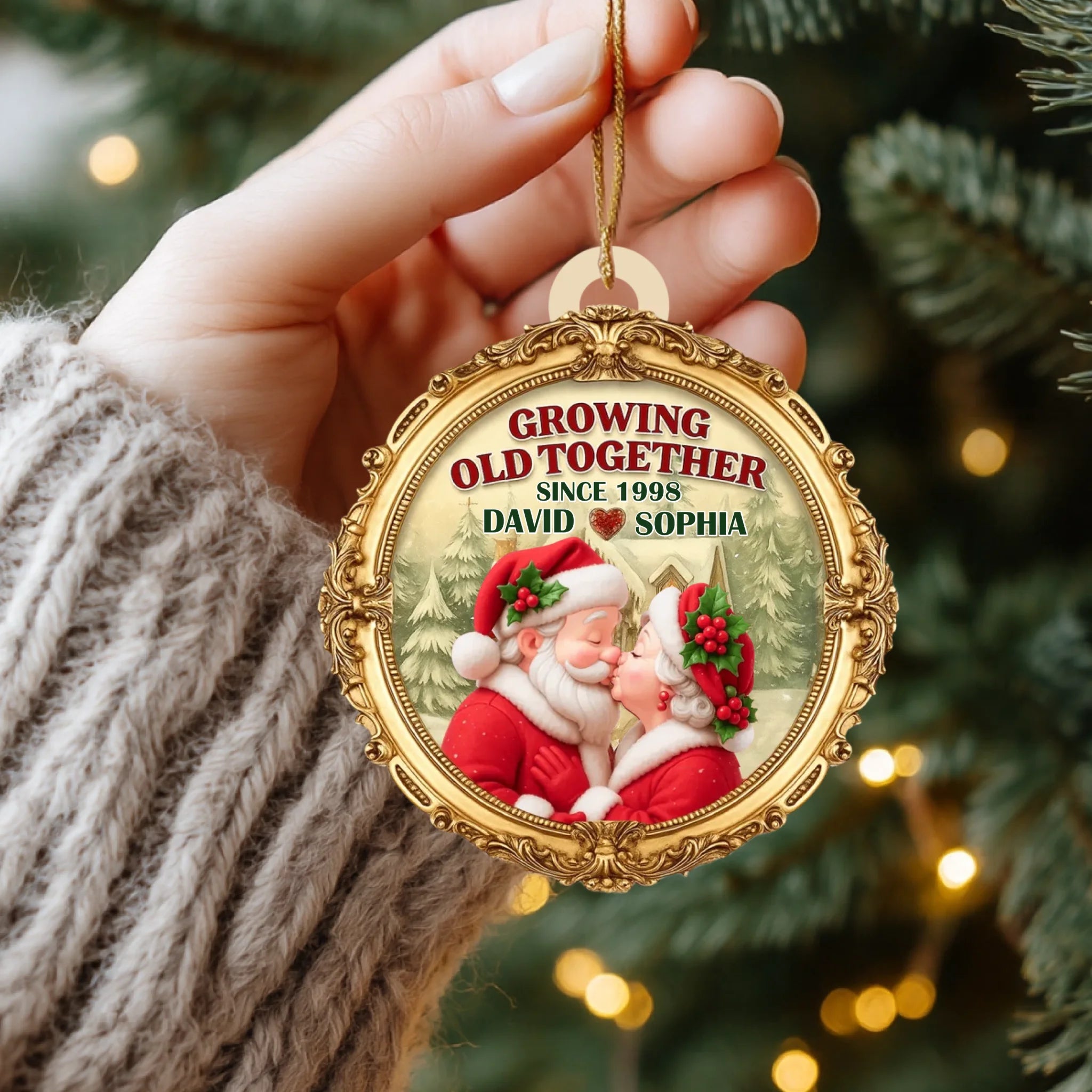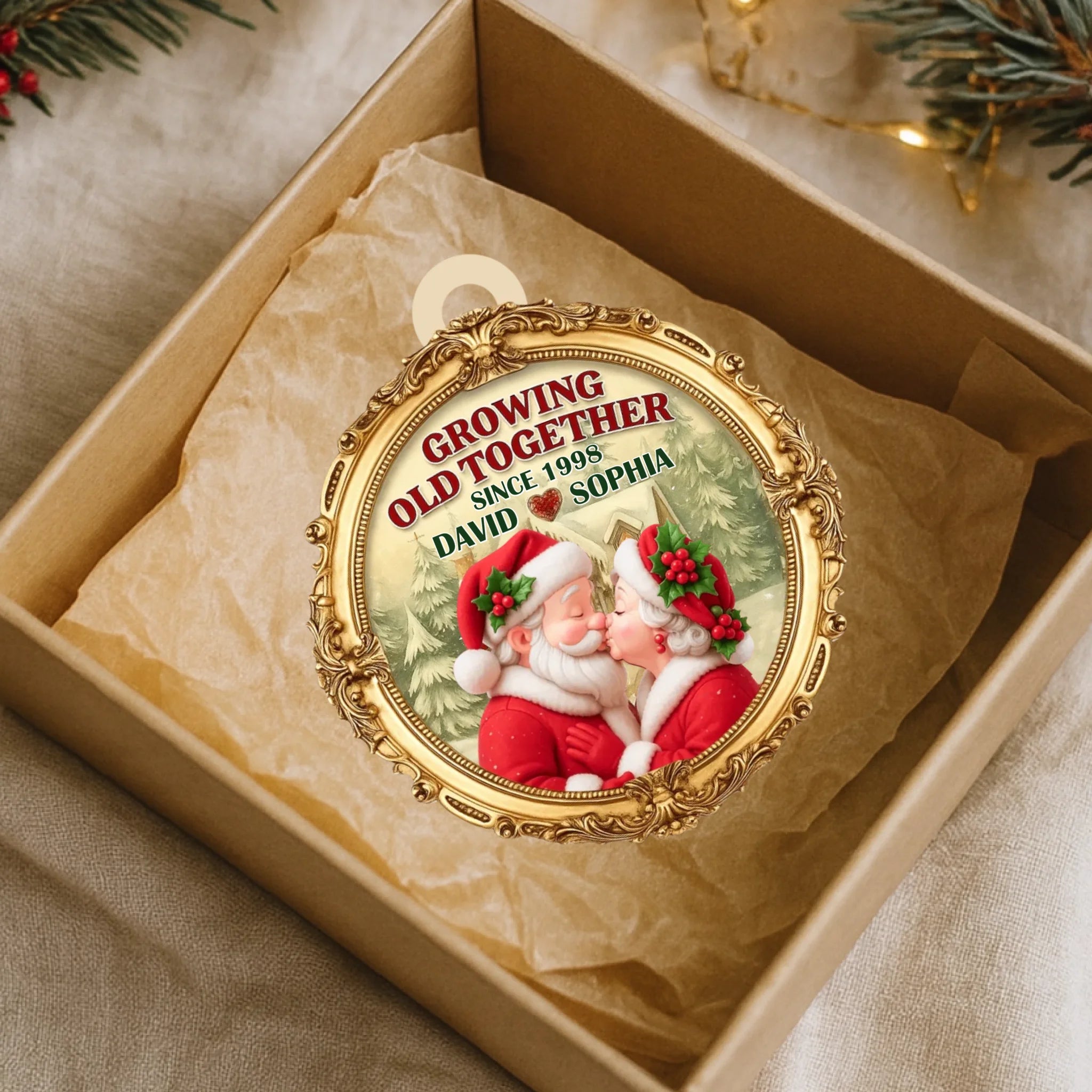 Adorno de Navidad personalizado "Envejeciendo Juntos" – Nombres de pareja, año y tono de piel a medida