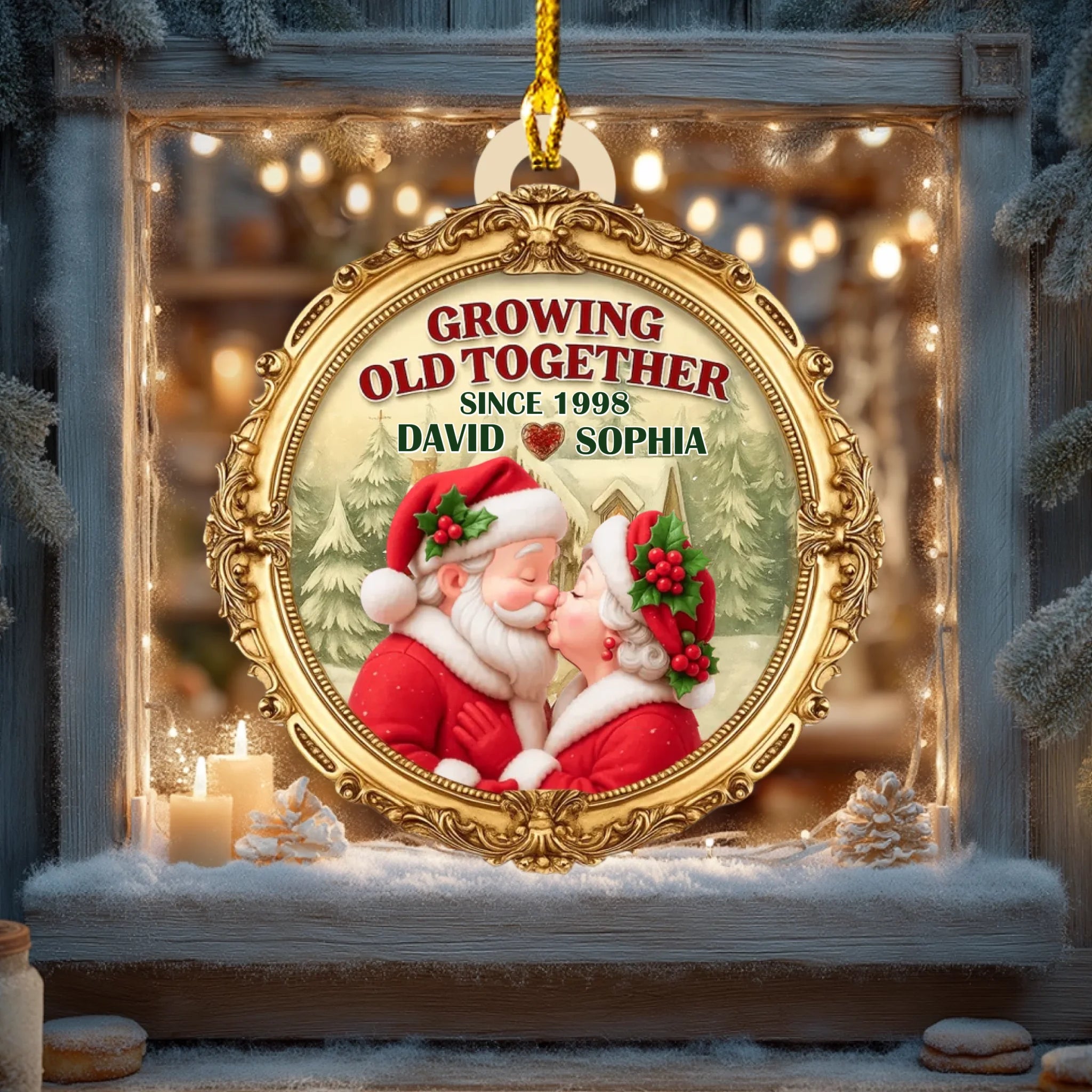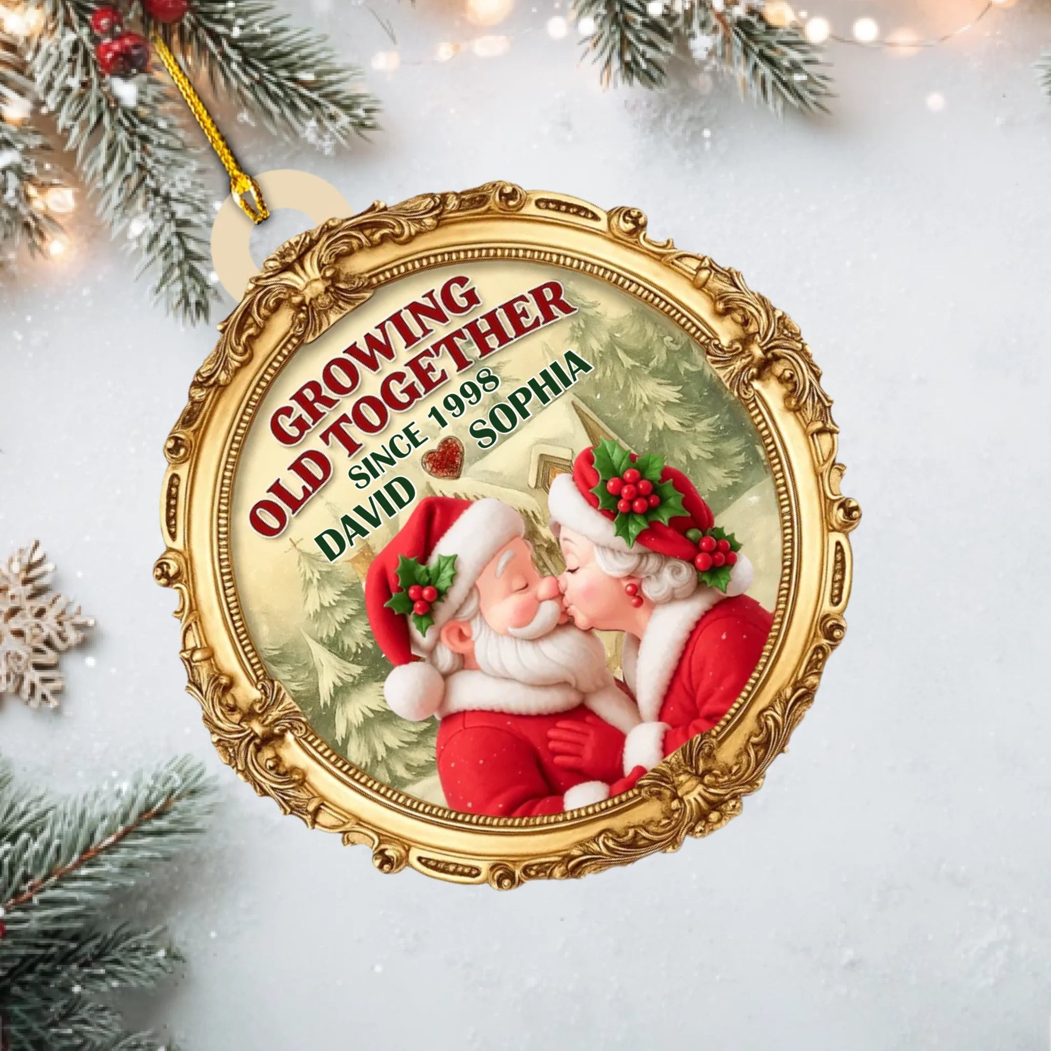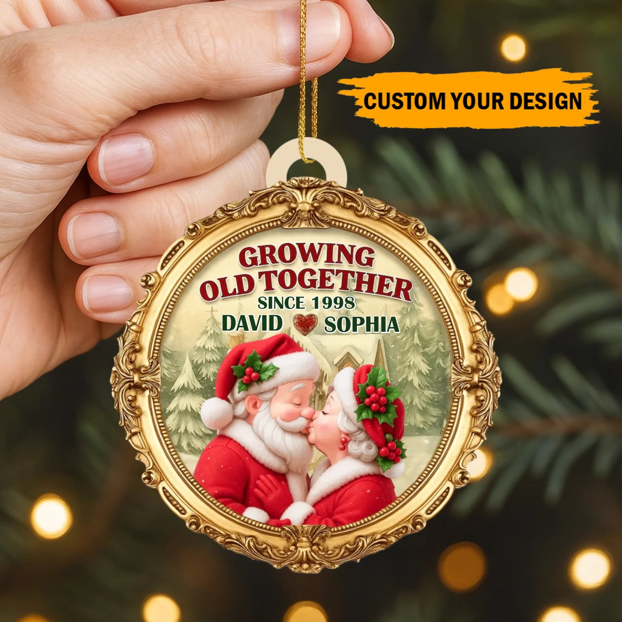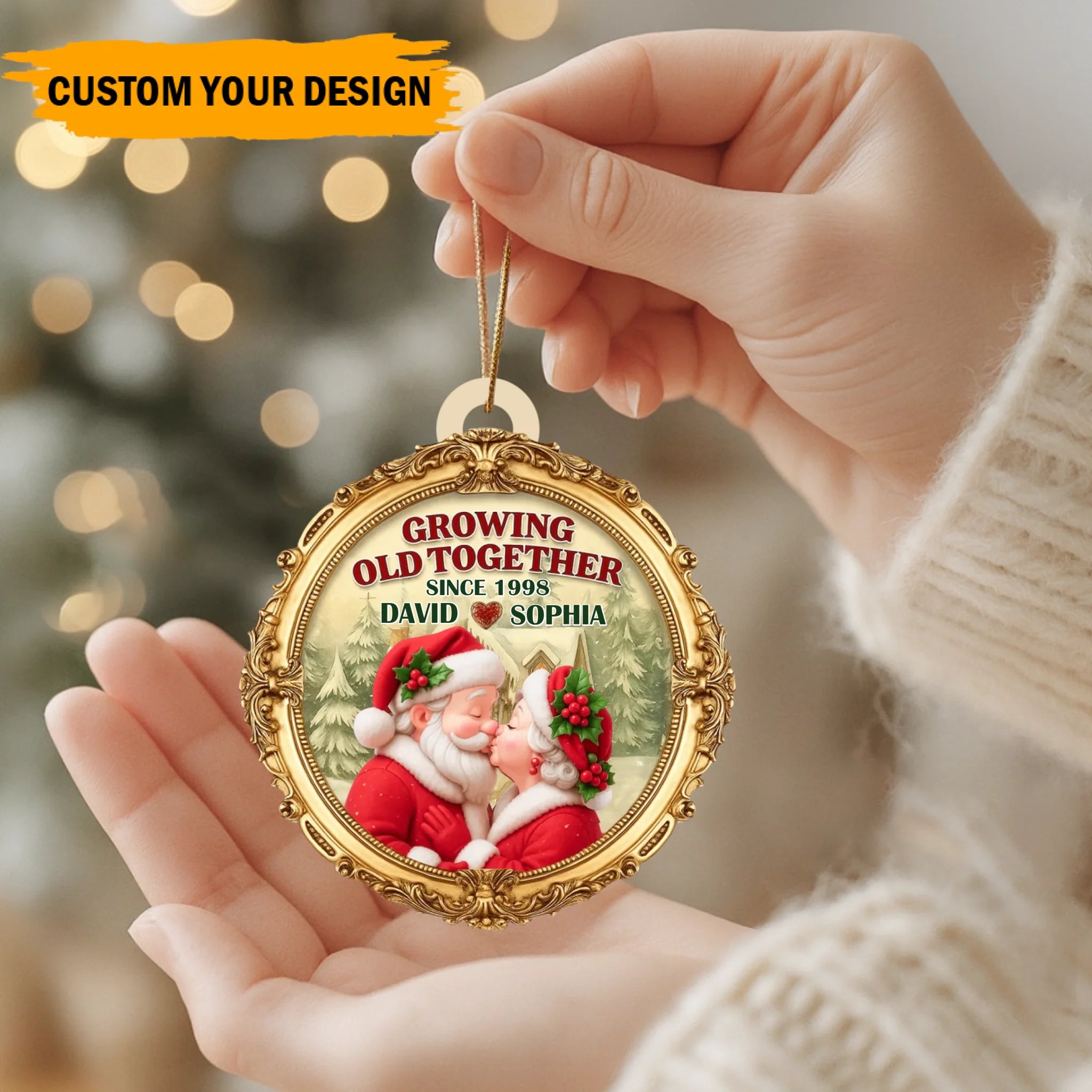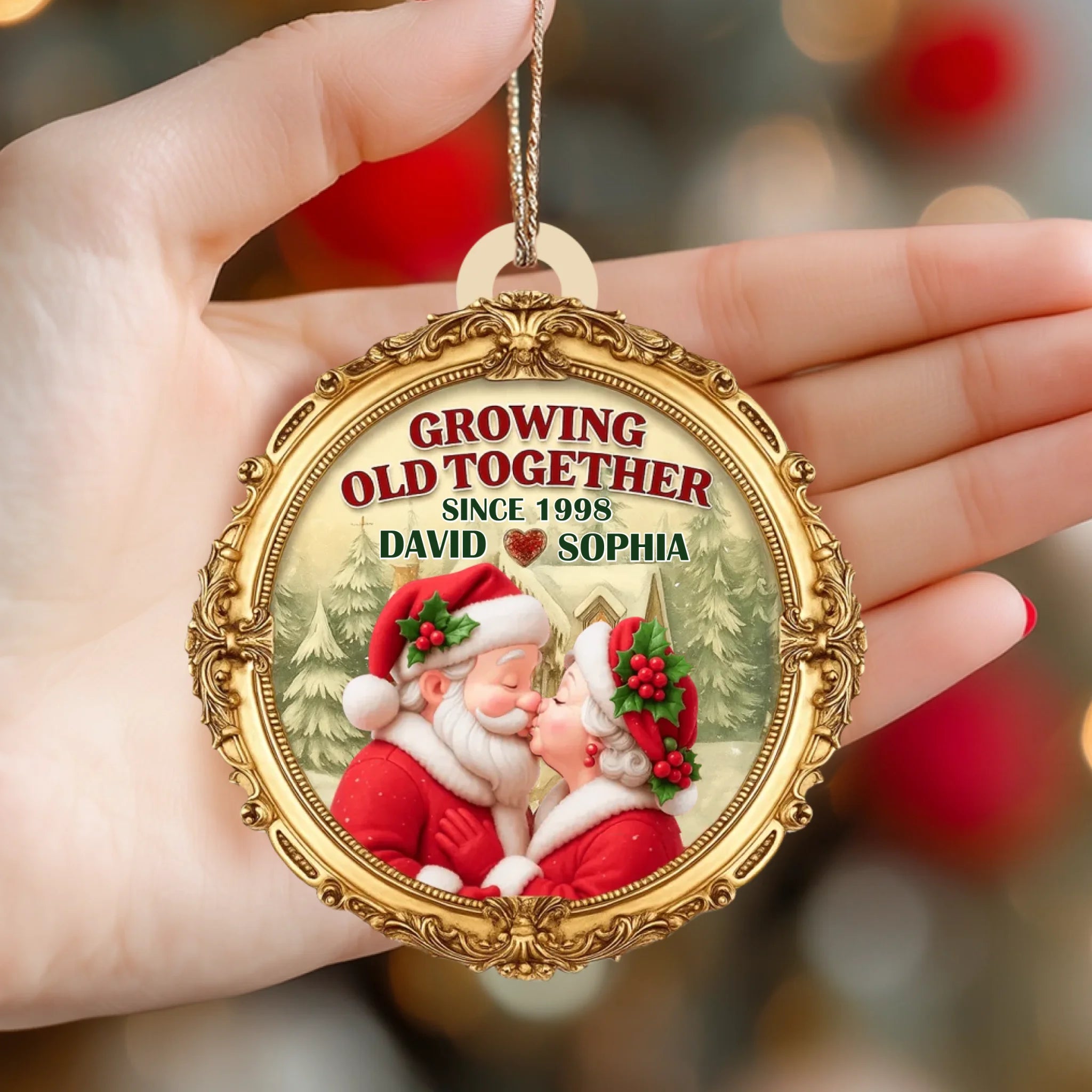 Adorno de Navidad personalizado "Envejeciendo Juntos" – Nombres de pareja, año y tono de piel a medida