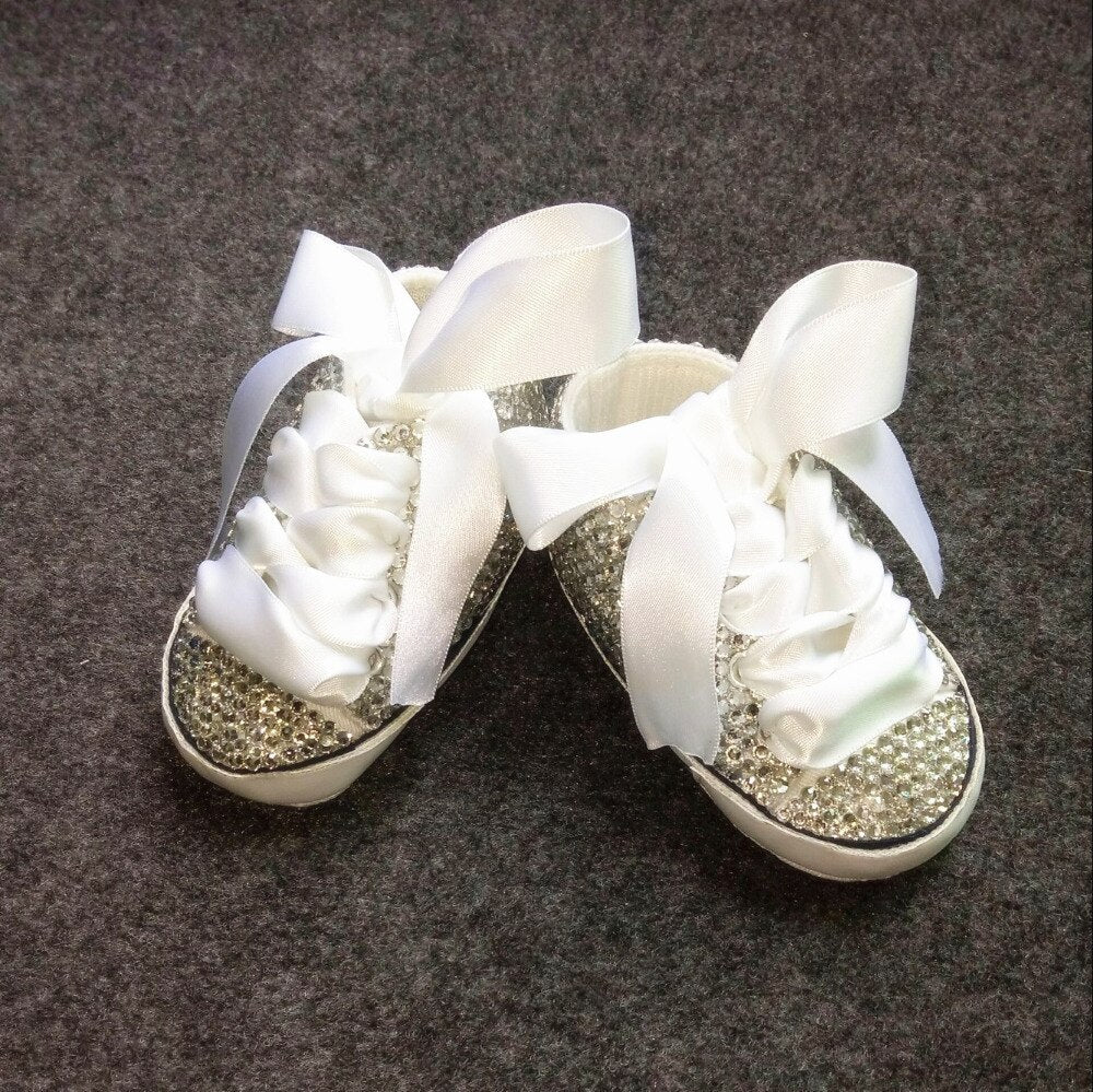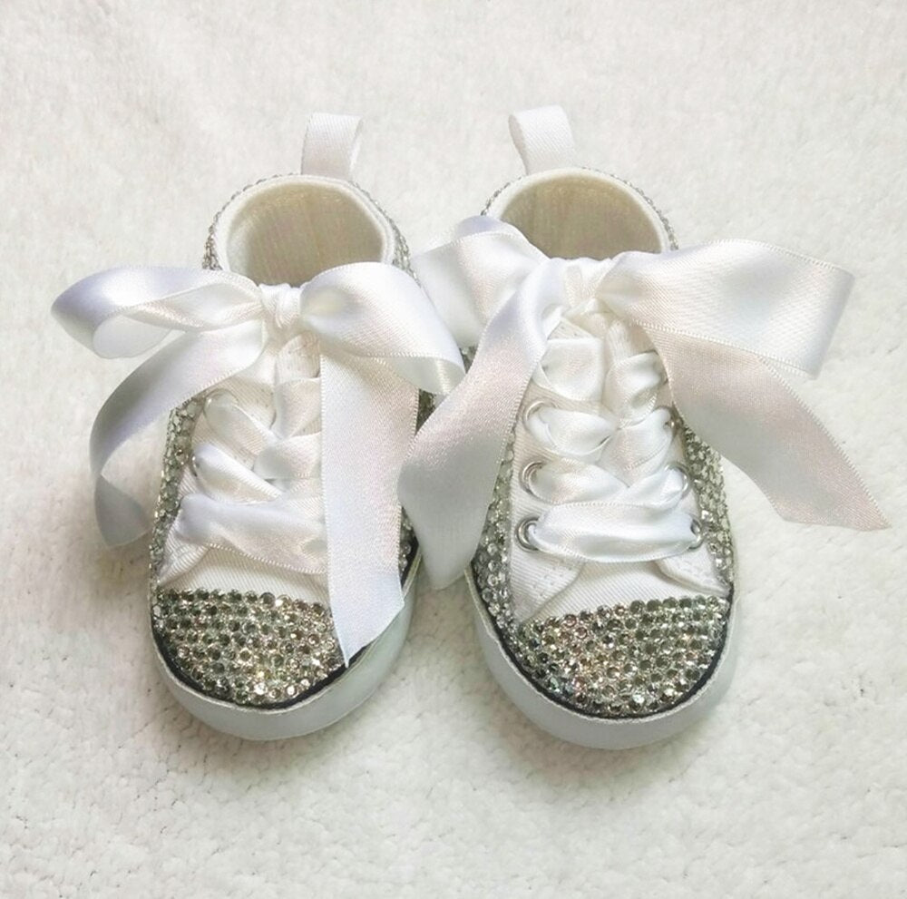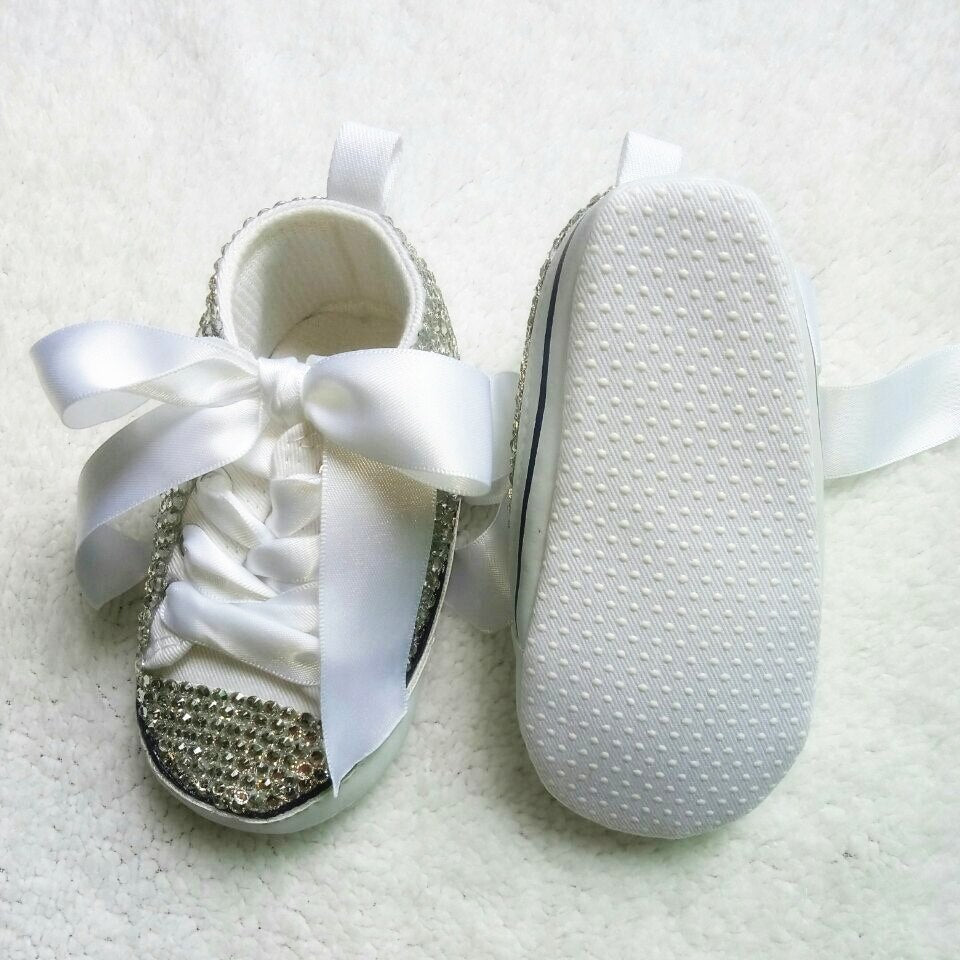 Zapatos de bebé con cordones brillantes hechos a mano y lazo