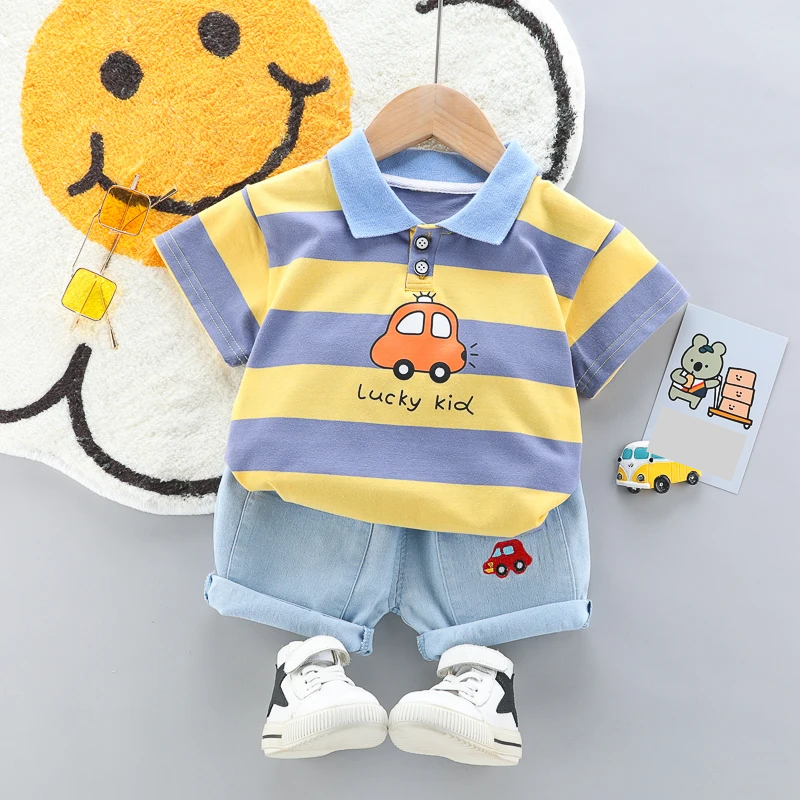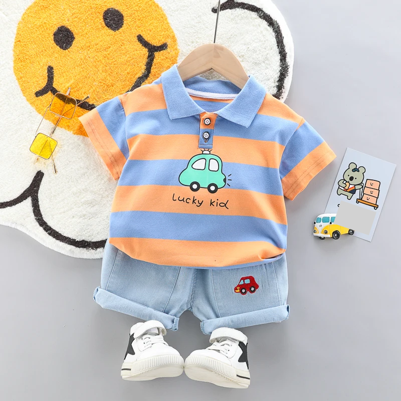 Conjunto de polo para bebé de alta calidad + pantalón corto vaquero