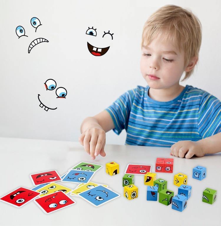 Involucre a sus hijos en un juego divertido con nuestro "Juguete de juego de cartas de rompecabezas", que presenta diferentes expresiones de emocionantes personajes de dibujos animados . Los cubos están formados por bloques de madera con diferentes imágenes en todos sus lados. ¡Este divertido juego de rompecabezas mantendrá ocupado a tu pequeño y lo ayudará a mejorar sus habilidades cognitivas! Los niños deben elegir una tarjeta y se les desafía a combinar los cubos apropiados para formar esa figura. Una actividad divertida para que tus pequeños jueguen junto con sus padres y amigos.